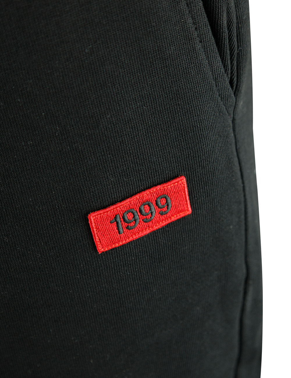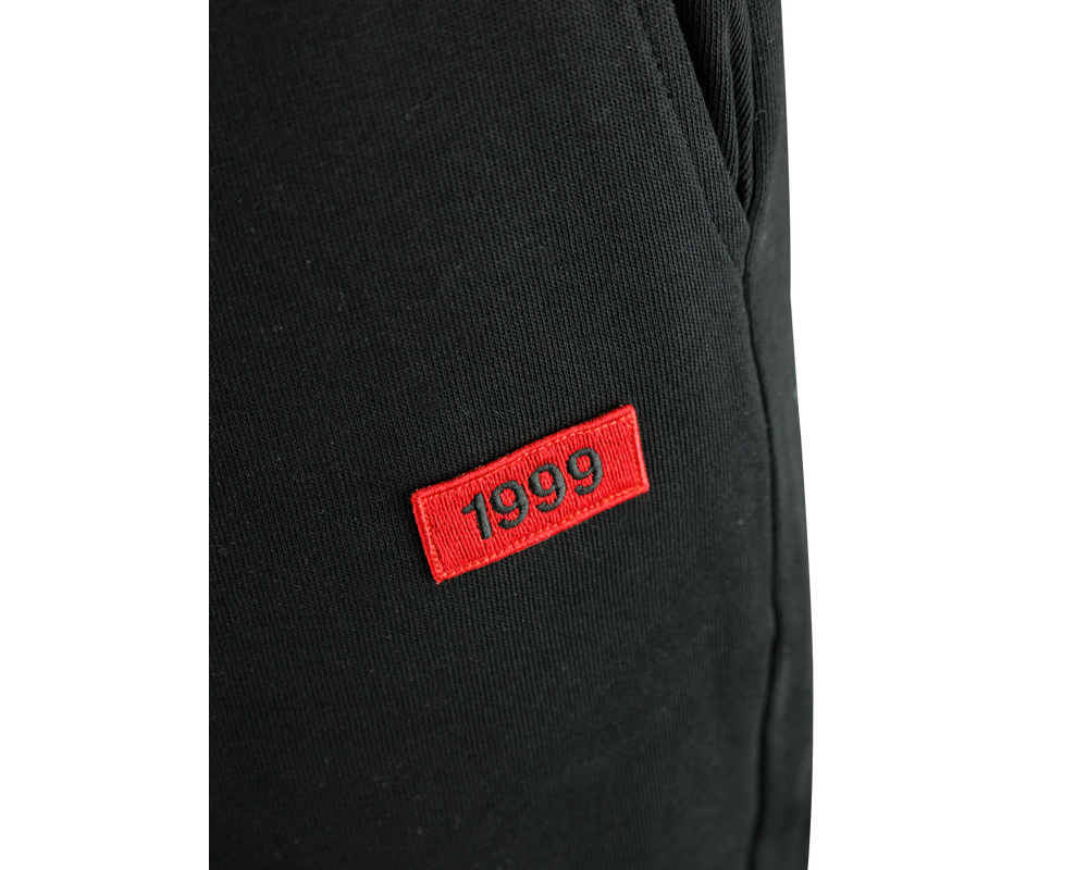 Sorte, bløde sweatpants med et lille rødt boks med '1999' på venstre ben. Komfortable og stilfulde, ideelle til både afslapning og hverdagsbrug.