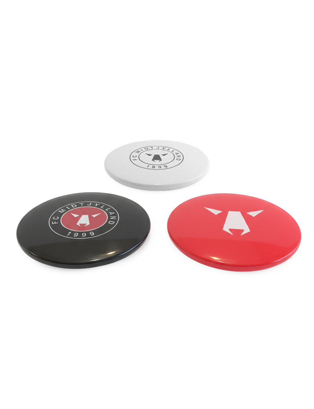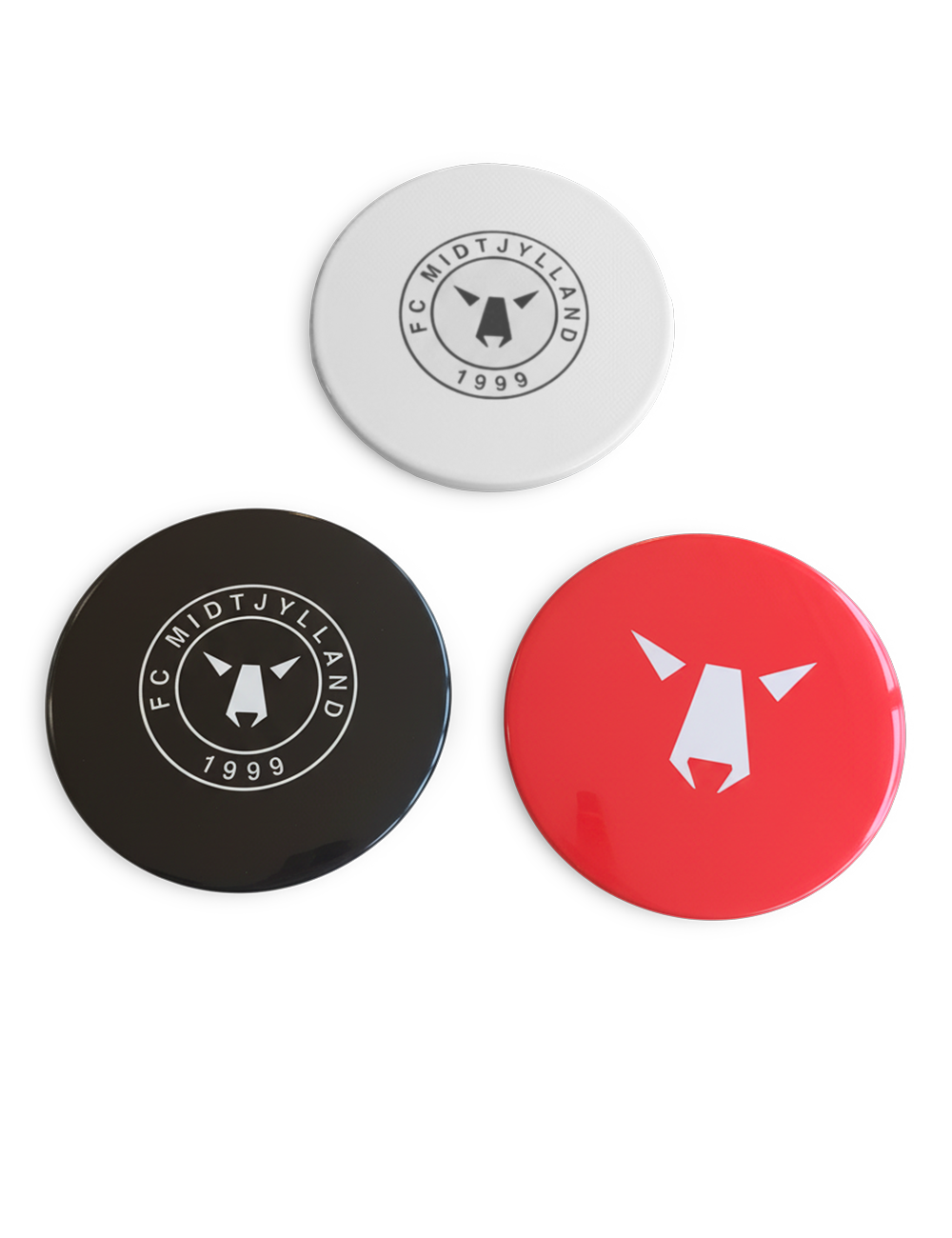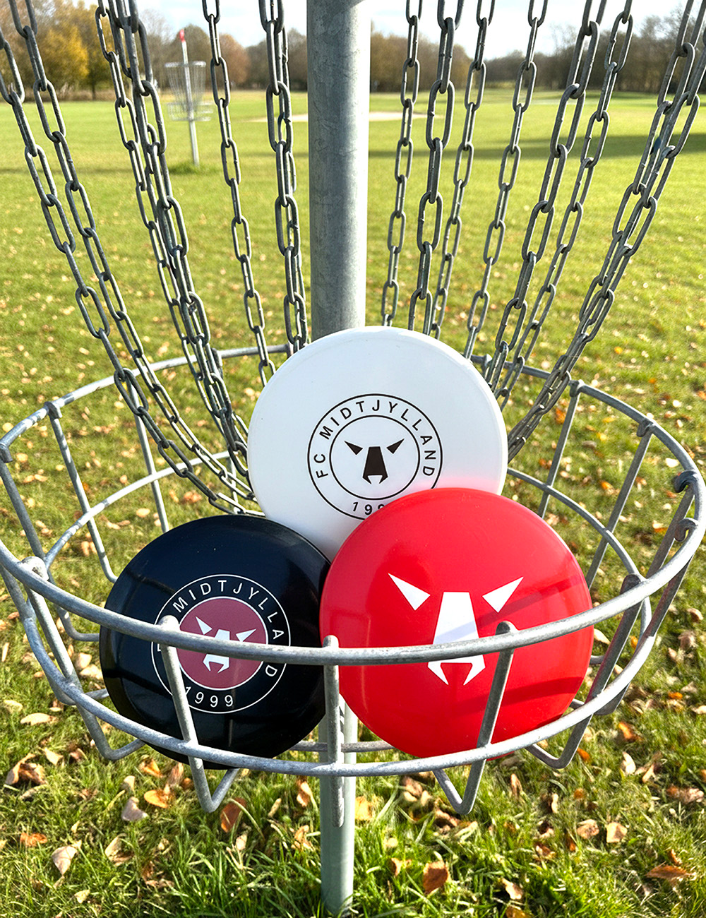 Tag din kærlighed til FC Midtjylland med ud på banen! Denne FCM Disc Golf 3-pak er perfekt til både begyndere og erfarne spillere, der vil kombinere sport og klubstolthed. Sættet indeholder tre discs i ikoniske FCM-farver: hvid, sort og rød – hver med det velkendte ulvelogo.