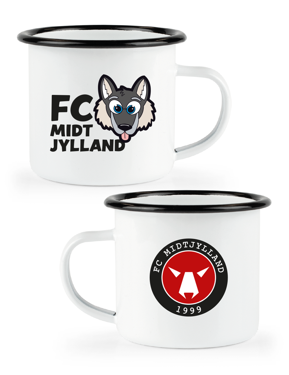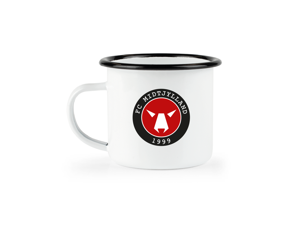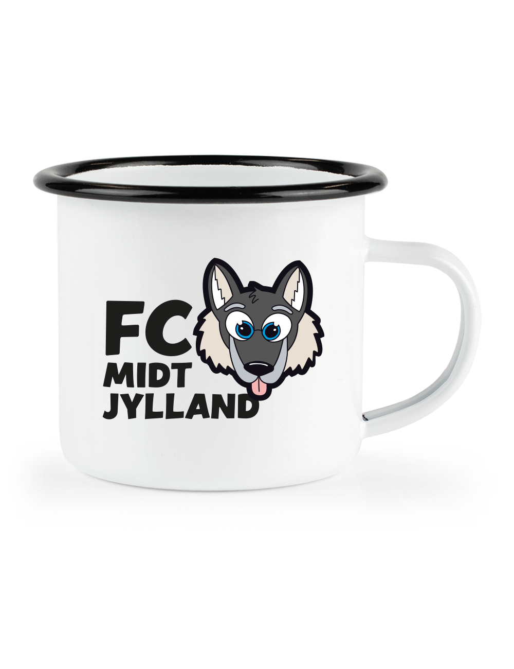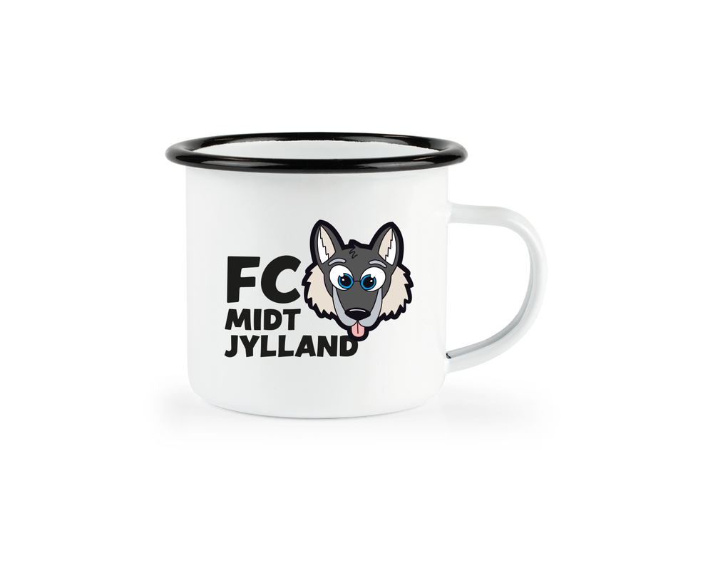 Det hvide emaljekrus er designet med det klassiske FCM logo på den ene side, og vores maskot Lupus, på den anden side. Kruset har en fin sort kant.