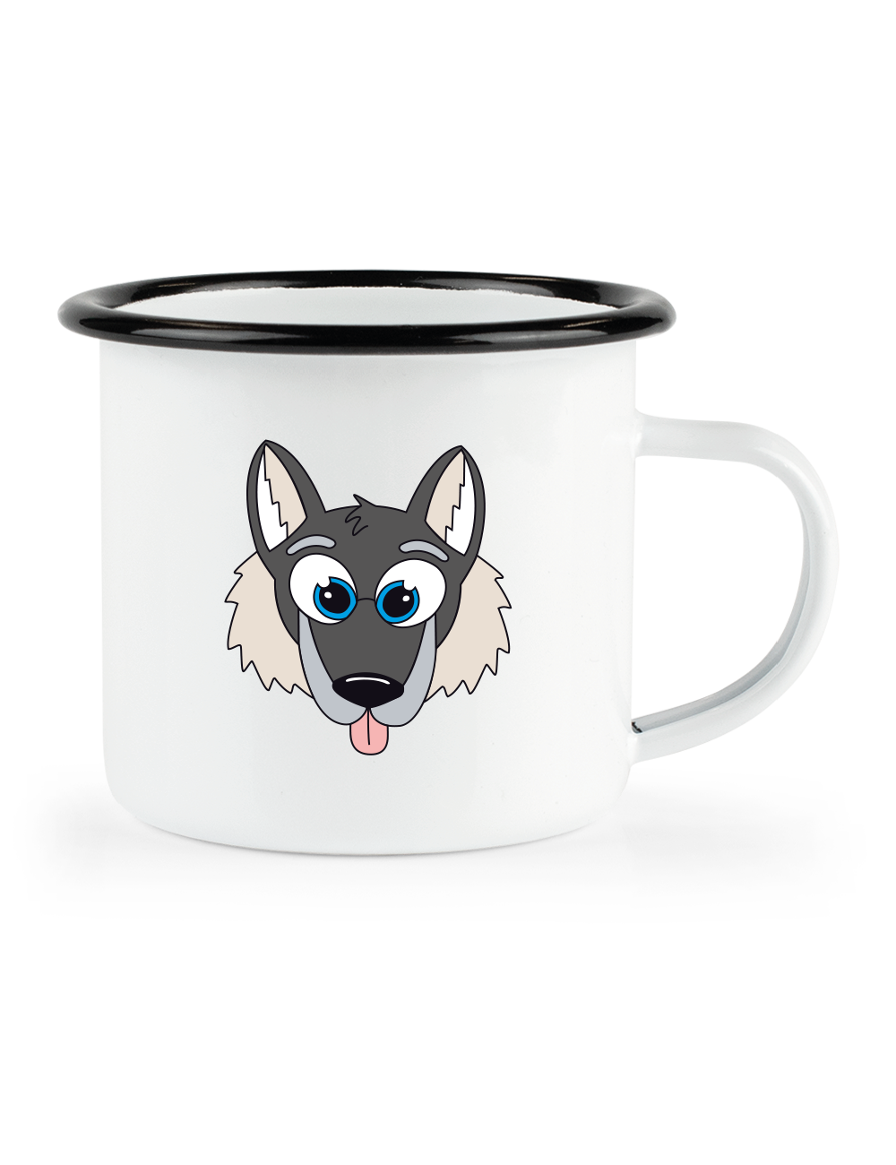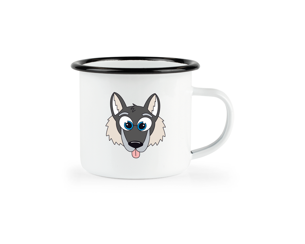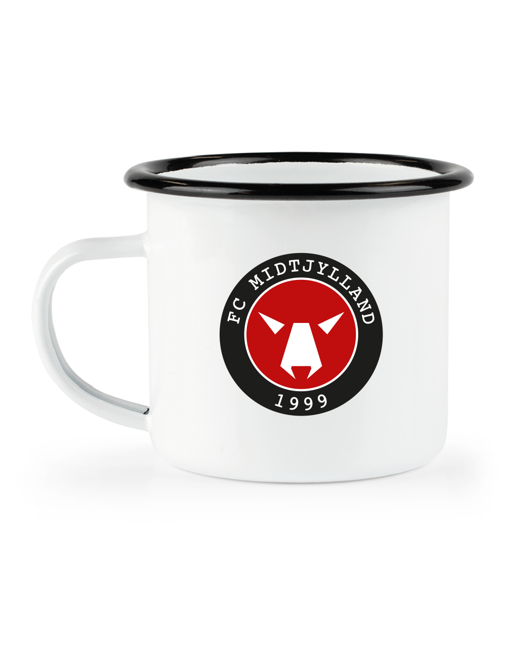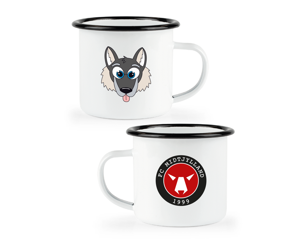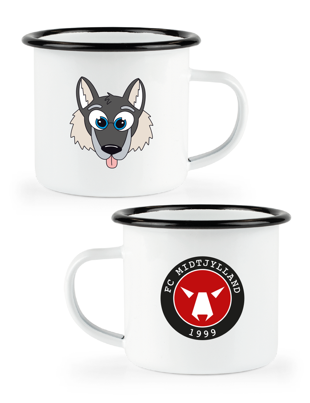 Det hvide emaljekrus er designet med det klassiske FCM logo på den ene side, og vores maskot Lupus, på den anden side. Kruset har en fin sort kant.
