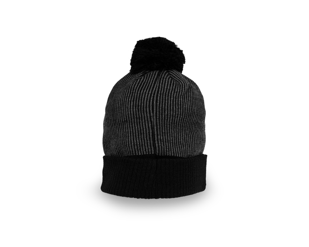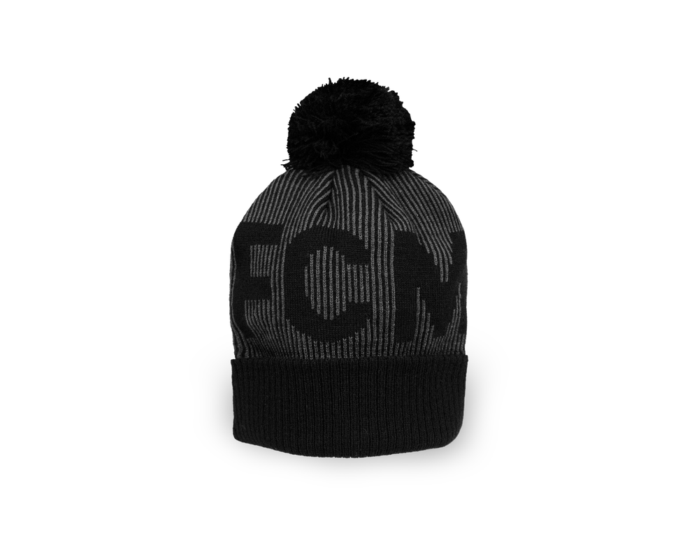 Sort/grå FC Midtjylland hue med med teksten F.C.M. og en kvast på toppen. Perfekt til de kolde måneder henover efteråret/vinteren for at holde dig varm på tribunen eller i hverdagen.