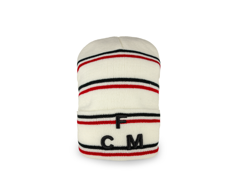 Opgrader dit look og hold dig varm med FCM Hue Stripes Hvid! Denne klassiske hue i hvid med stribedesign er både stilren og behagelig, perfekt til de kolde dage. Med sin enkle elegance passer den til enhver garderobe og giver dig mulighed for at vise din støtte til FC Midtjylland med et diskret, men sporty udtryk.