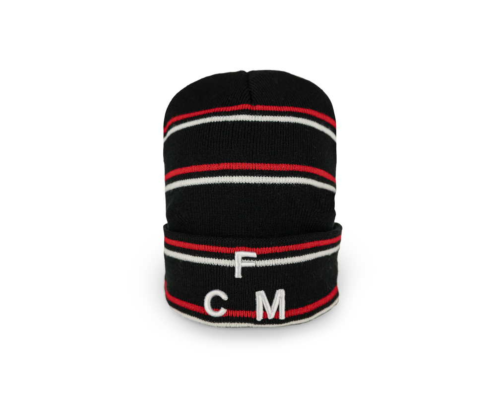 Hold varmen og støt FC Midtjylland med stil! FCM Hue Stripes Sort er en klassisk, sort hue med diskrete striber, der giver et moderne og sporty look. Lavet af blødt og varmt materiale, er den perfekt til kolde dage på stadion eller i hverdagen.