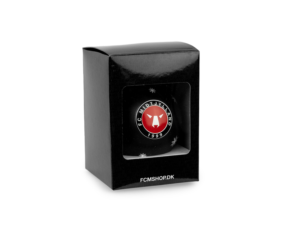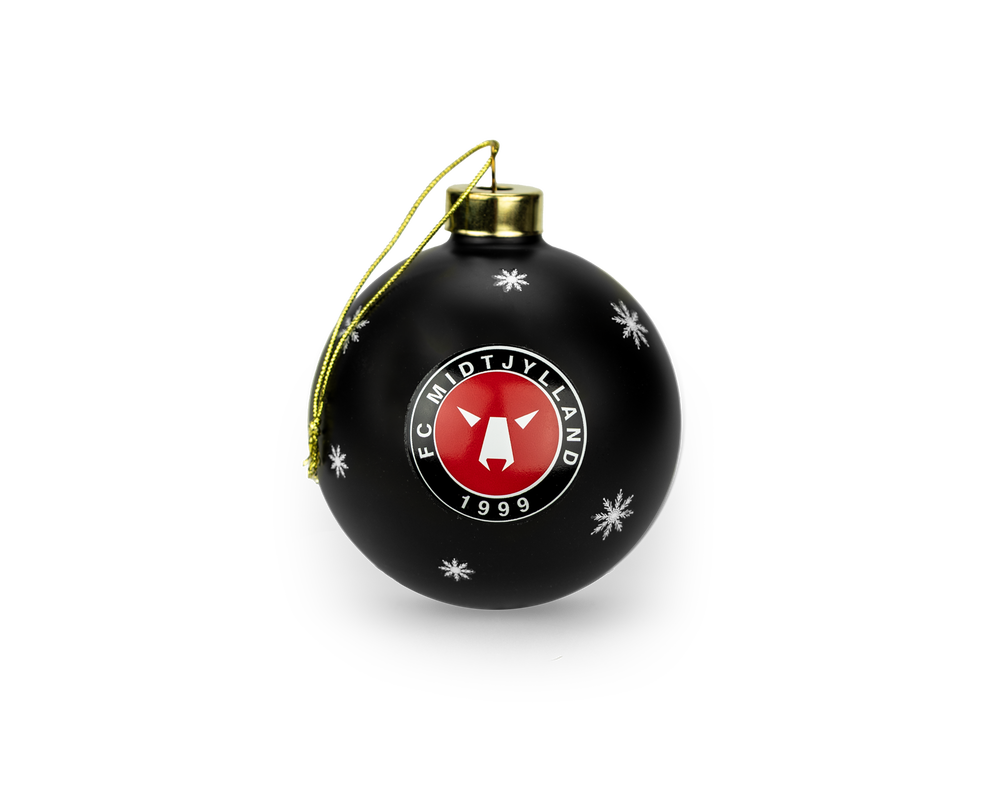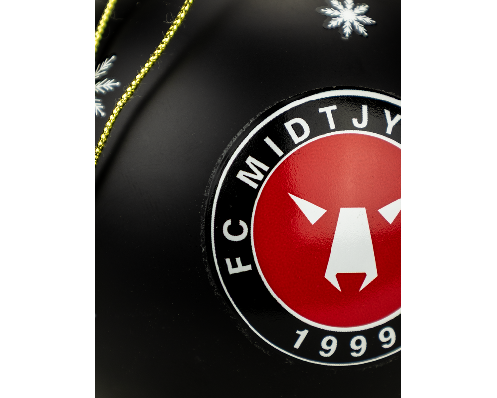 Gør julen ekstra magisk med den sorte FCM julekugle! Den elegante, matte sorte glasoverflade med hvide snefnug og et stort FC Midtjylland-logo på forsiden – perfekt til fans, der vil vise deres klubkærlighed helt ind i december.