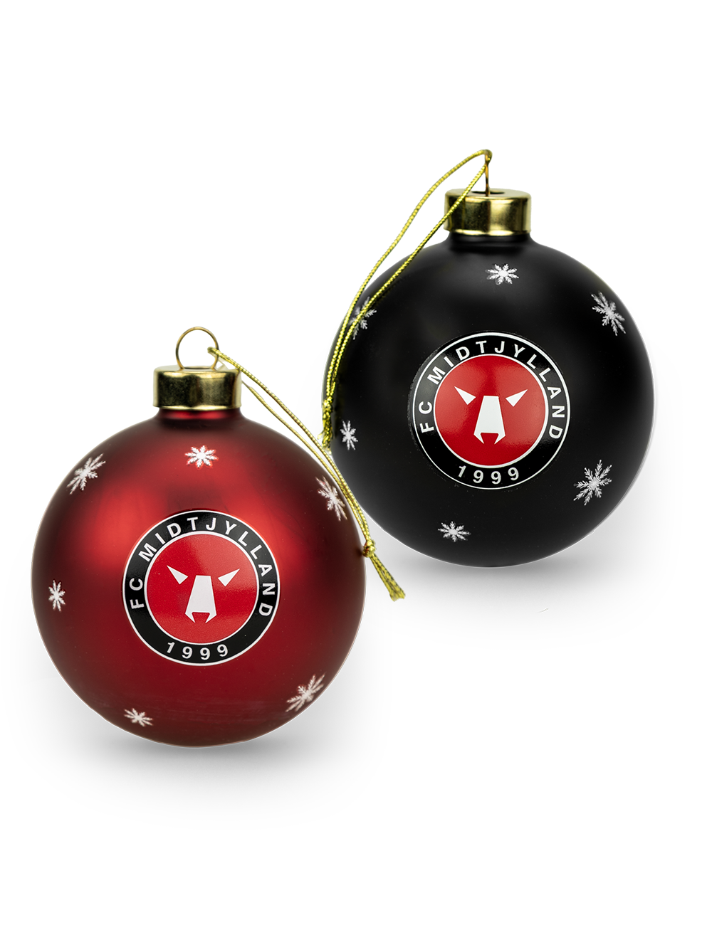 Med denne 2-pak får du begge FCM julekugler – én sort og én rød – begge dekoreret med hvide snefnug og et stort FC Midtjylland-logo foran. Et perfekt sæt til dig, der vil have klubstemning på juletræet, eller som gave til en ægte ulv. Leveres i en flot gaveæske.