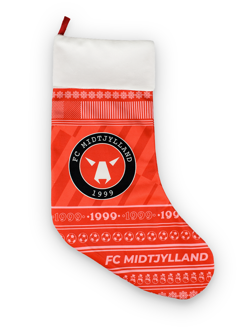 FCM Julesok er et must have for den juleglade FCM-fan. Den er designet i klassiske røde og hvide julefarver med et FCM logo i midten, samt teksten FC Midtjylland og 1999. Der er ingen tvivl om at denne julesok vil pryde FCM-hjem i hele regionen henover juleperioden og sørge for den helt rigtige julestemning.