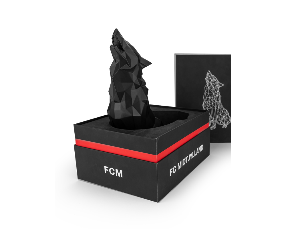Ulven har været en central del af FC Midtjyllands identitet siden klubbens grundlæggelse i 1999 og repræsenterer styrken ved at stå sammen. Den sorte FCM Wolf Figur er skabt for at ære denne stærke historie. Med sin fiber glas-konstruktion, elegante mat sorte farve, og premium indpakning, er figuren en moderne fortolkning af klubbens værdier og ikoniske logo.