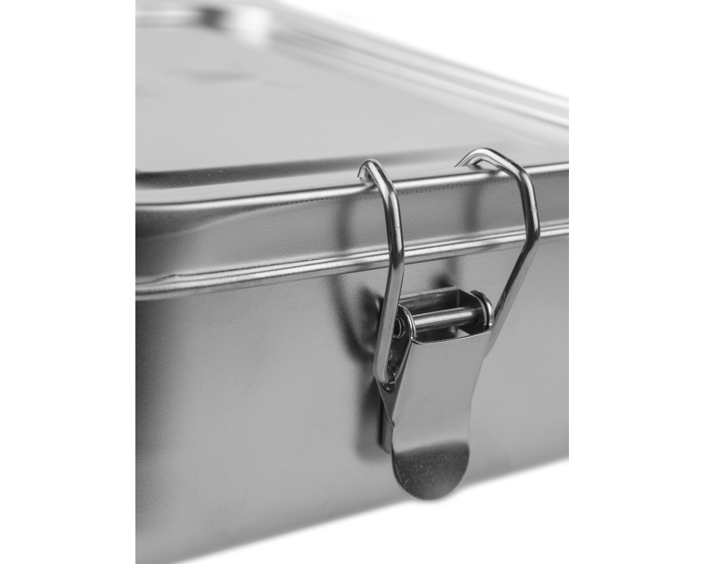 Den nye FCM Madkasse i stål er den perfekte løsning til både børn og voksne, der skal have mad med på farten. Med sin holdbare stålstruktur og det flotte ulve-logo, kombinerer den funktionalitet med stil. Den har en praktisk låsemekanisme, der sikrer, at låget sidder tæt og holder maden frisk hele dagen.