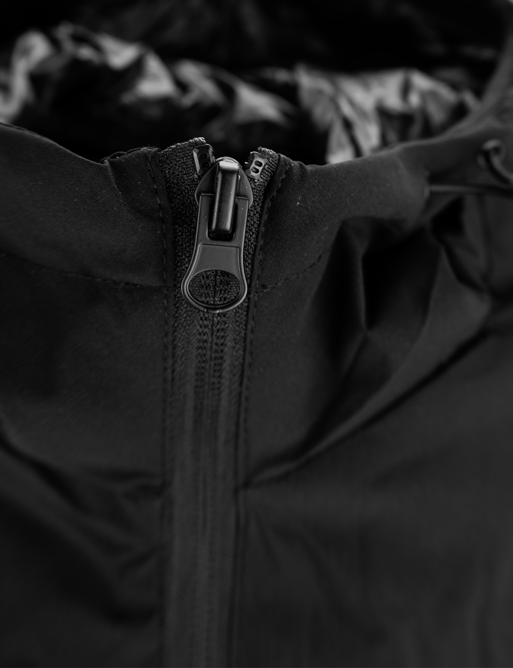 Denne jakke i sort er den perfekte kombination af komfort og et moderne, minimalistisk design. Denne sorte hættejakke er fremstillet i høj kvalitet, der sikrer en behagelig pasform og et stilfuldt look til både hverdagsbrug og afslappede anledninger. Jakken er udstyret med en justerbar hætte, der giver ekstra beskyttelse på kølige dage, samt praktiske lommer.