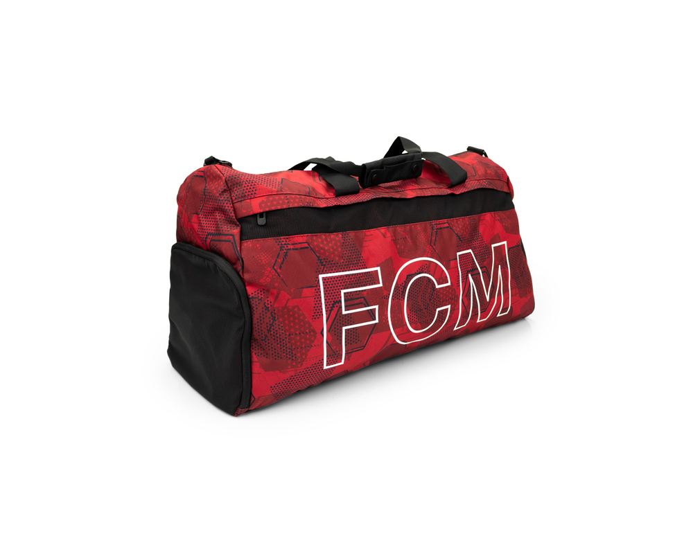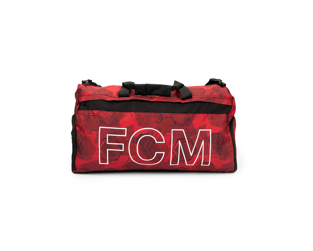 Klar til kamp og træning! Denne FCM sportstaske er både praktisk og stilfuld – designet i klubbens farver med geometrisk mønster og stort FCM-logo foran. Tasken har god plads til tøj, sko og udstyr, samt en justerbar skulderrem for komfortabel transport.