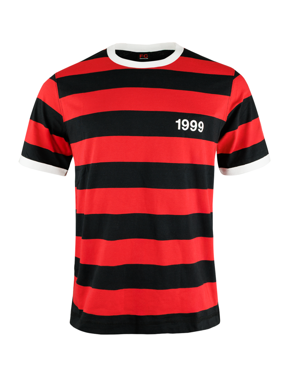 Giv de yngste fans et stilrent FCM-look med FCM Striped 1999 Tee i sort/rød. T-shirten kombinerer klassiske striber med stærke klubdetaljer: På ryggen pryder et stort ”99”, mens brystet er markeret med ”1999” – året hvor FCM blev grundlagt. Materialet er en blød og slidstærk bomuldsblanding, der giver trøjen høj komfort, god åndbarhed og en holdbar pasform.