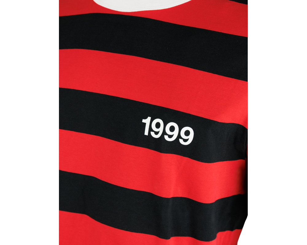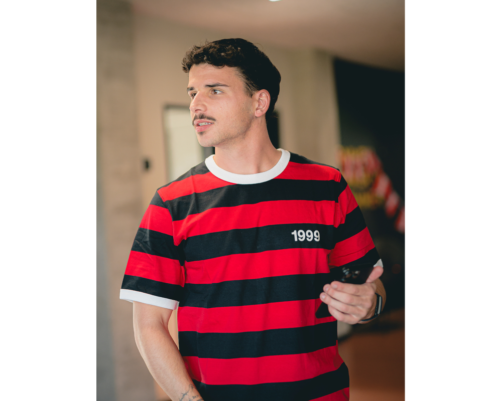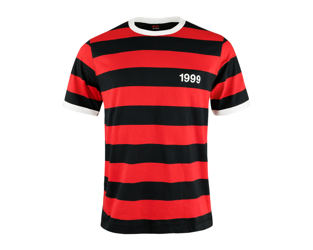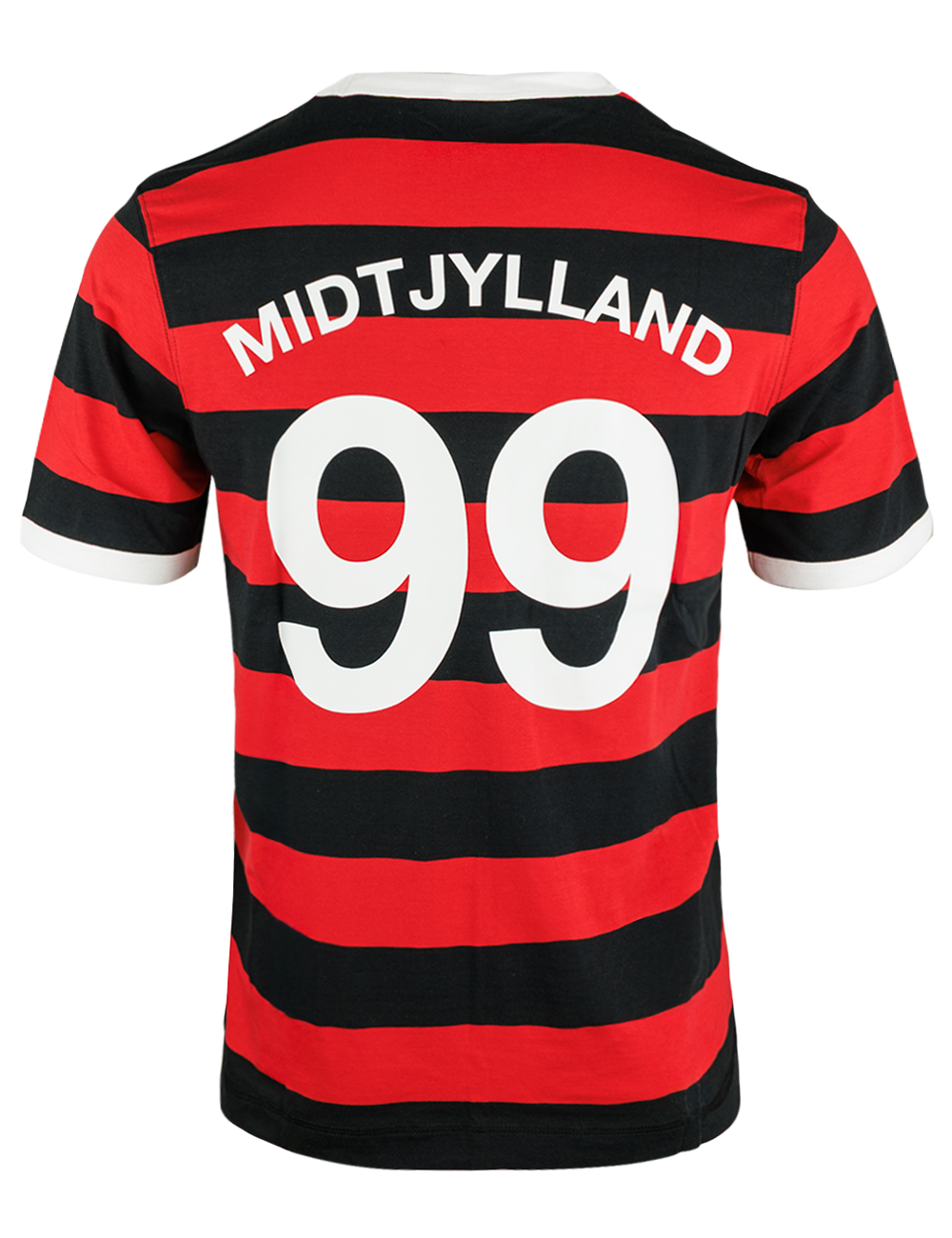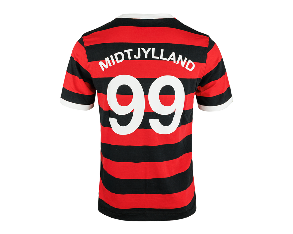 FCM Striped 1999 Tee er designet til fans, der vil bære klubbens farver med stolthed. T-shirten har et markant sort/rødt stribedesign, ”1999” på brystet og et stort ”99” på ryggen – en tydelig hyldest til året, hvor FC Midtjylland blev grundlagt. Fremstillet i en blød og holdbar bomuldsblanding, hvor en del af bomulden er under omlægning til økologisk dyrkning, en del er klassisk bomuld, og resten er genanvendt bomuld. Det giver en komfortabel og mere ansvarlig trøje, der føles behagelig mod huden og bevarer pasformen vask efter vask.