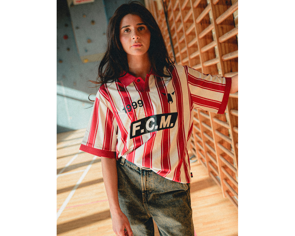 Tag et skridt tilbage i tiden med denne retroinspirerede FCM t-shirt. Det tidløse rød-hvide stribede design kombineret med et let og behageligt materiale gør den til et oplagt valg for både loyale fans og dem, der sætter pris på klassisk fodboldstil i hverdagen.