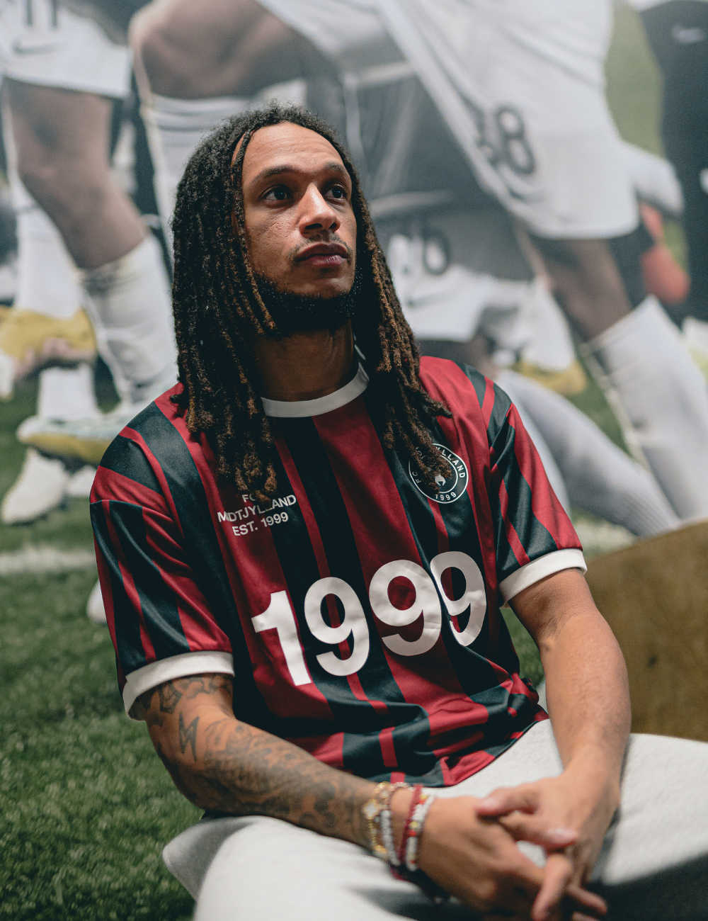 Hyld FC Midtjyllands stiftelsesår med denne retro-inspirerede trøje i bordeaux og sort striber. Det store “1999”-tryk og klassiske FCM-logo giver et autentisk look, mens den bløde, åndbare kvalitet og hvide ribdetaljer ved hals og ærmer fuldender det tidløse design.