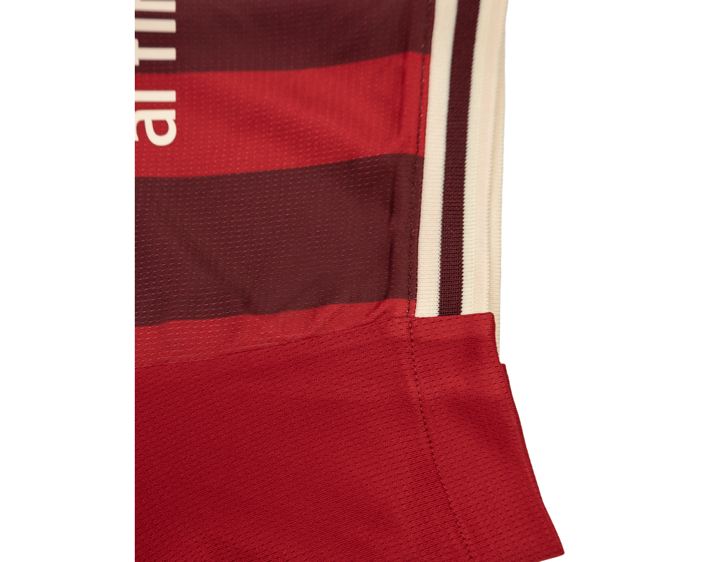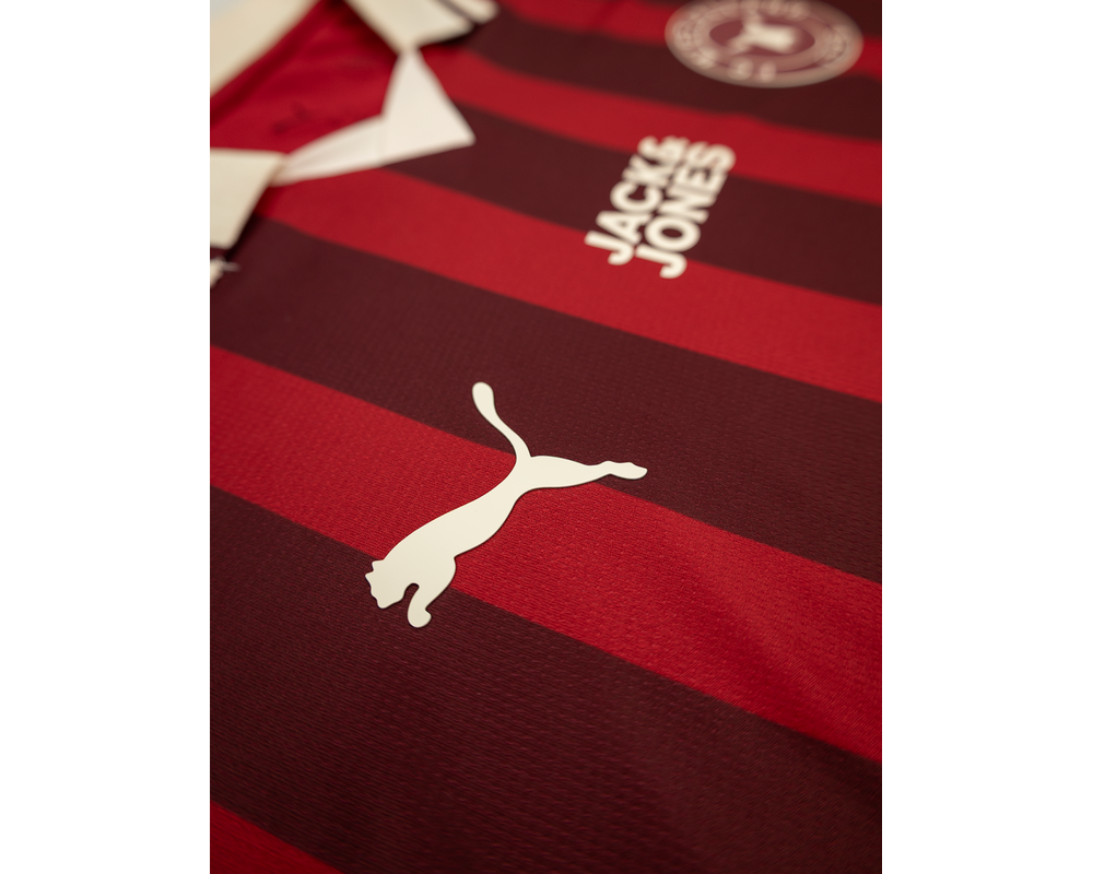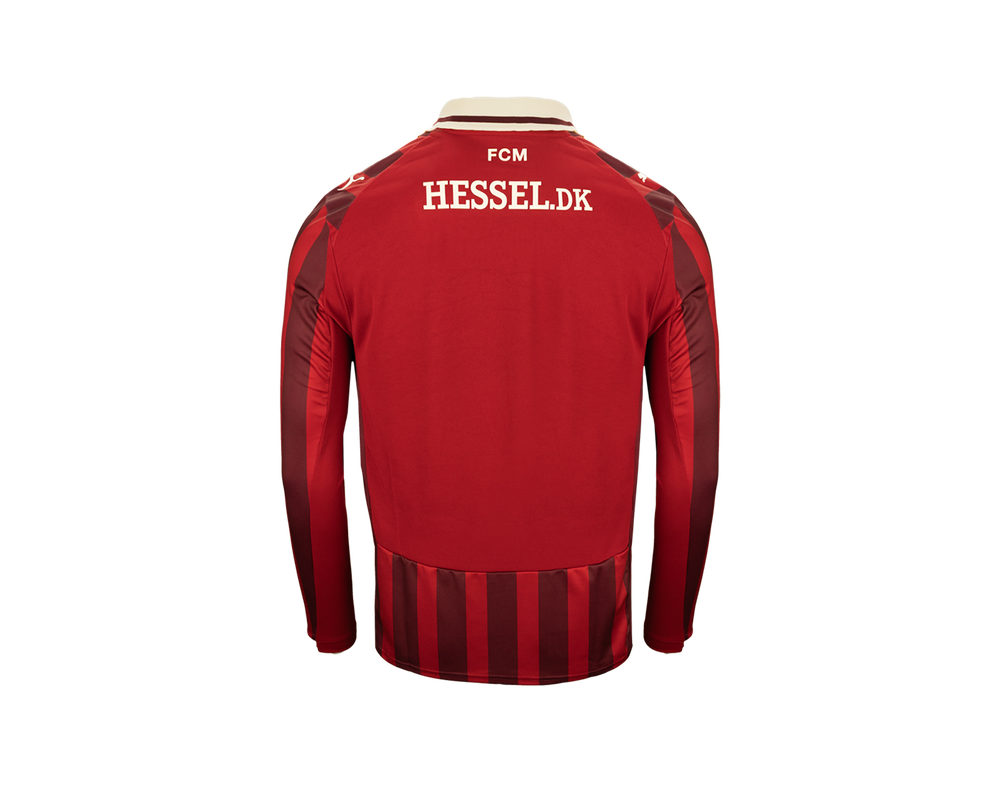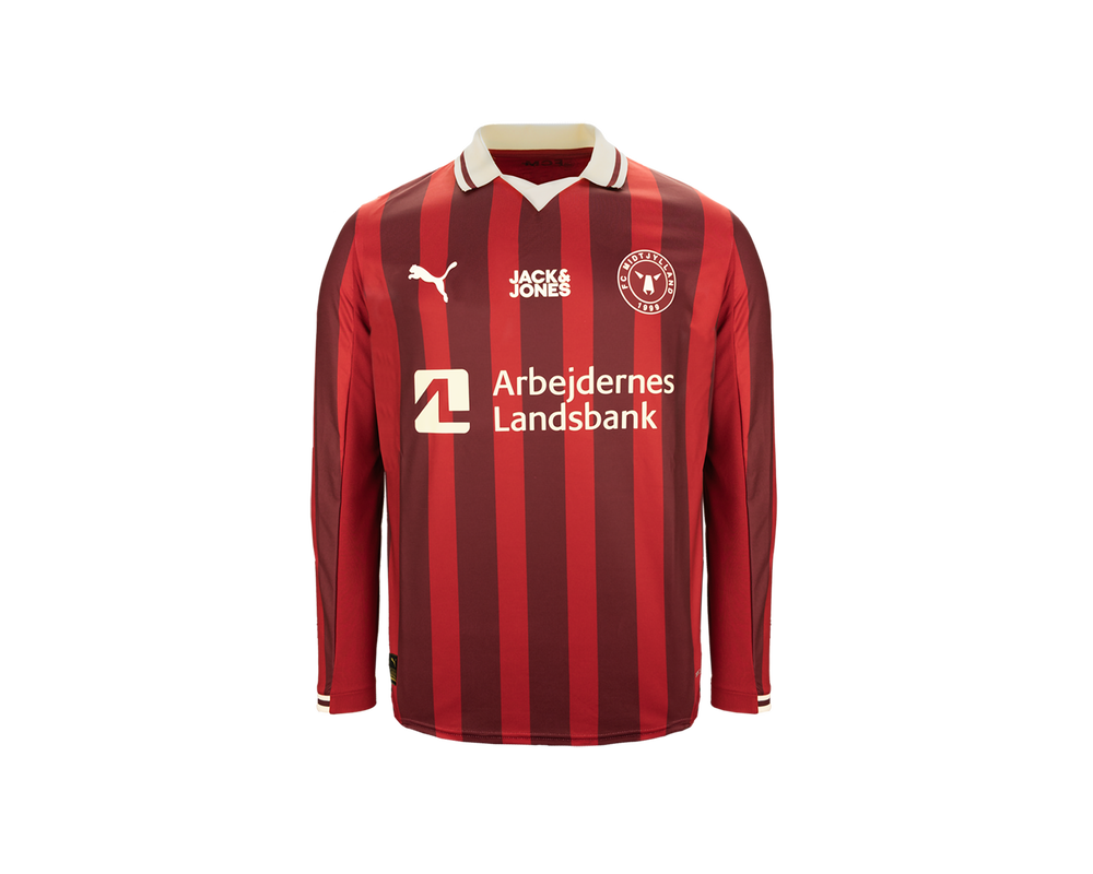 Tag den stolte FC Midtjylland-ånd med dig – uanset hvor du befinder dig – med den langærmet udebanetrøje for sæsonen 25/26. Denne stilrene trøje kombinerer klassisk design med elegante bordeaux striber i et unikt, sublimationsprintet design, der fremhæver klubbens karakter og tradition. Hver detalje er gennemtænkt – fra den lette og åndbare kvalitet, der sikrer maksimal komfort både på og uden for banen, til de præcise syninger, der giver et eksklusivt udtryk.