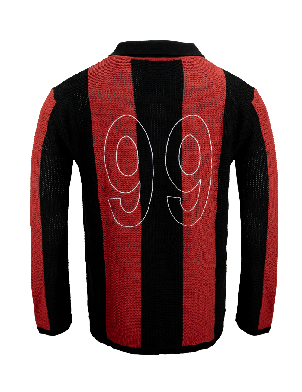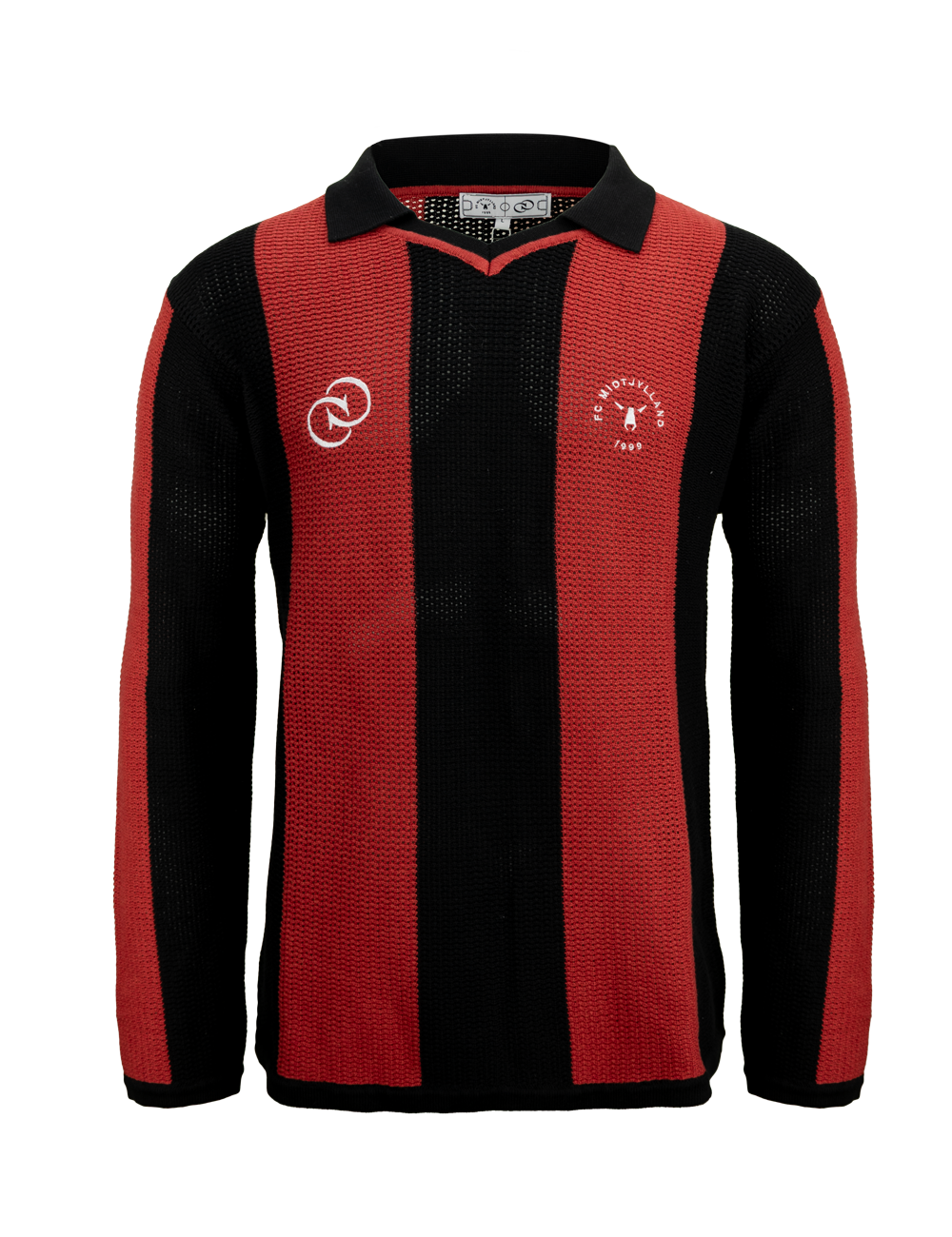 Strikken kommer i de velkendte sorte og røde lodrette striber, der hylder klubbens identitet. På brystet finder du et elegant broderet FCM-logo samt CALMÉ’s signaturmærke, som giver trøjen et eksklusivt og håndlavet udtryk. Bagsiden fuldendes af det markante nummer 99, som giver trøjen et autentisk retro-touch. Materialet er kraftigt, luftigt og behageligt strikket, hvilket gør trøjen ideel til både forår, efterår og kølige aftener. Den klassiske krave fuldender stilen og giver et sporty, men stilrent look.