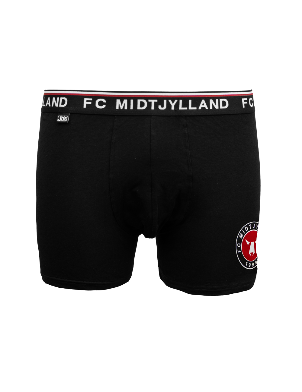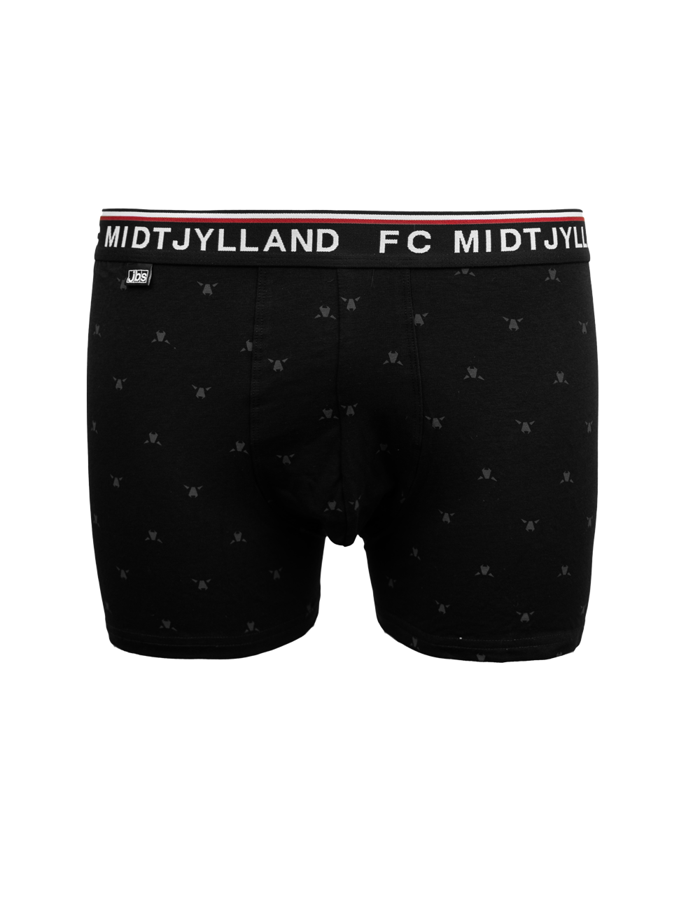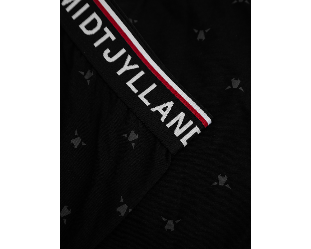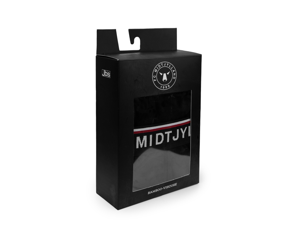 FC Midtjylland 2-pack underbukser med sort elastikkant og teksten FC MIDTJYLLAND på elastikken. Underbukserne er designet med fokus på komfort og har et elastisk bånd i livet, der sikrer en behagelig pasform hele dagen. Sættet indeholder et par med farvet FCM-logo og et par med mange små tone-i-tone ulvehoveder.