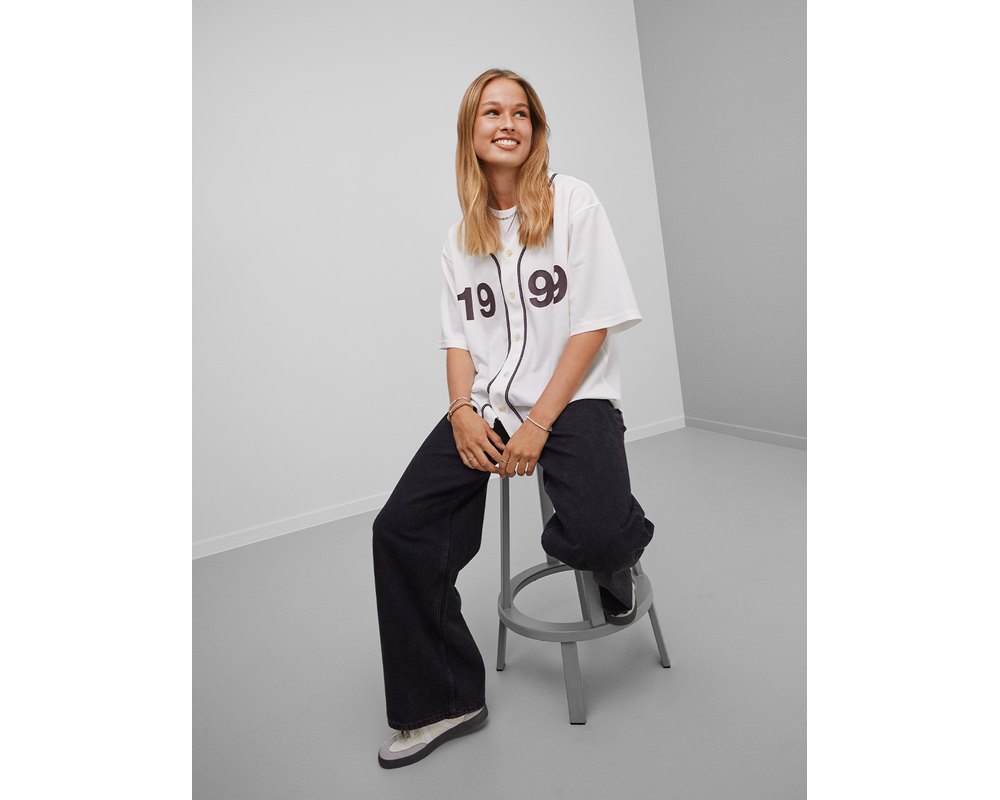 Denne baseball jersey kombinerer stil og nostalgi med sit retro-design og moderne detaljer. Den er hvid med lilla skrift, hvilket giver et elegant og klassisk look. På fronten står "1999" i markant hvid skrift, som fremhæver en vigtig årgang eller begivenhed. På ryggen, lige under nakken, står "F.C. Midtjylland" i samme stilfulde hvide tekst, der tilføjer et personligt præg og en følelse af tilknytning. Denne jersey er både iøjefaldende og tidløs, perfekt til enhver fan, der ønsker at vise deres støtte med stil.