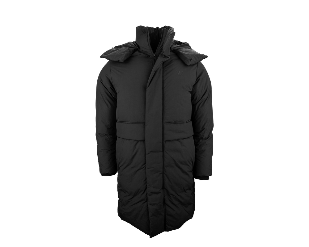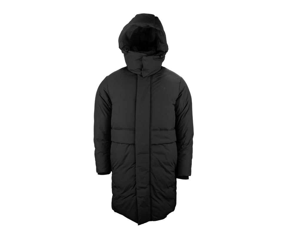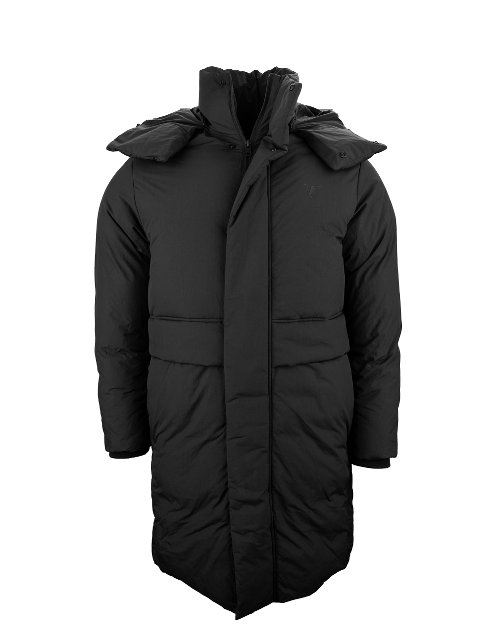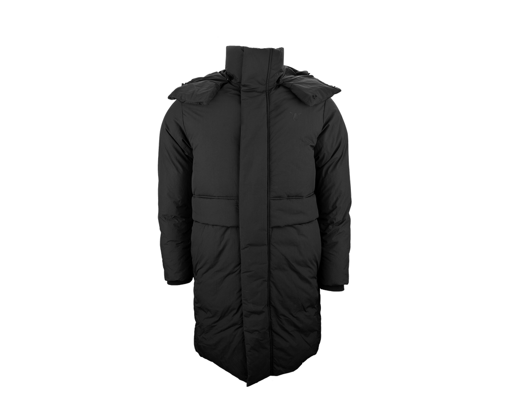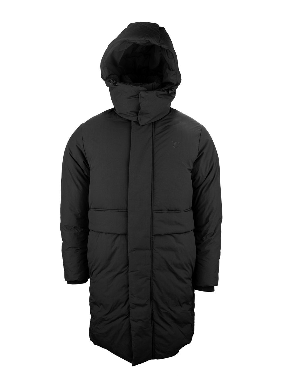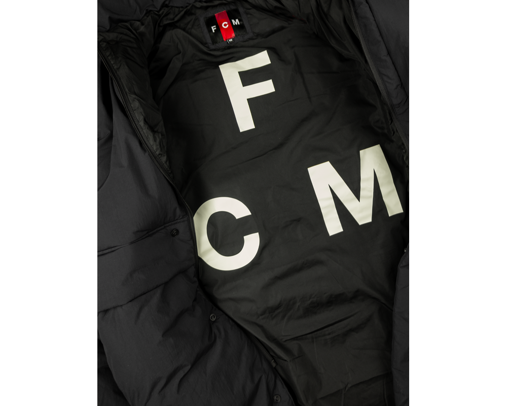 Den lange pufferjakke er det ideelle valg til kolde vinterdage. Den er ikke kun varm og blød, men også praktisk med en rummelig hætte, der beskytter mod elementerne. Jakken har to udvendige lommer, der giver nem adgang til dine ting, og en indvendig lomme til sikker opbevaring. Indvendigt er der hvid skrift med "F C M," der tilføjer et unikt touch, samt et subtilt ulvelogo på brystet, der giver jakken et stilfuldt præg. Derudover kan jakken justeres med snore, så du får den perfekte pasform og ekstra beskyttelse mod kulden.