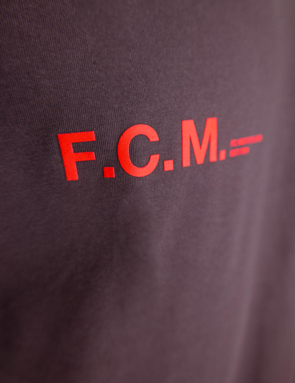 En stilren t-shirt med elegant F.C.M. tekst på højre side af brystet. Dertil er denne t-shirt designet med et lille ulvehoved fra det officielle FC Midtjylland logo i nakken som fuldender looket.