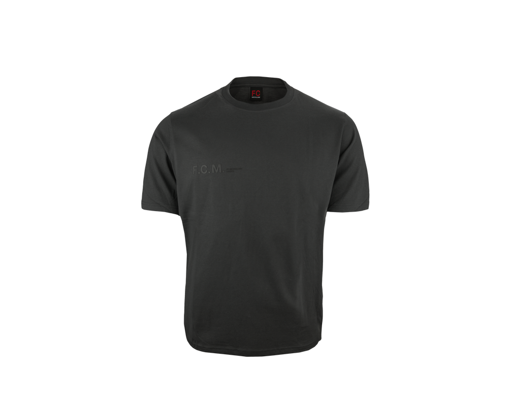 En stilren t-shirt med elegant F.C.M. tekst på højre side af brystet. Dertil er denne t-shirt designet med et lille ulvehoved fra det officielle FC Midtjylland logo i nakken som fuldender looket.