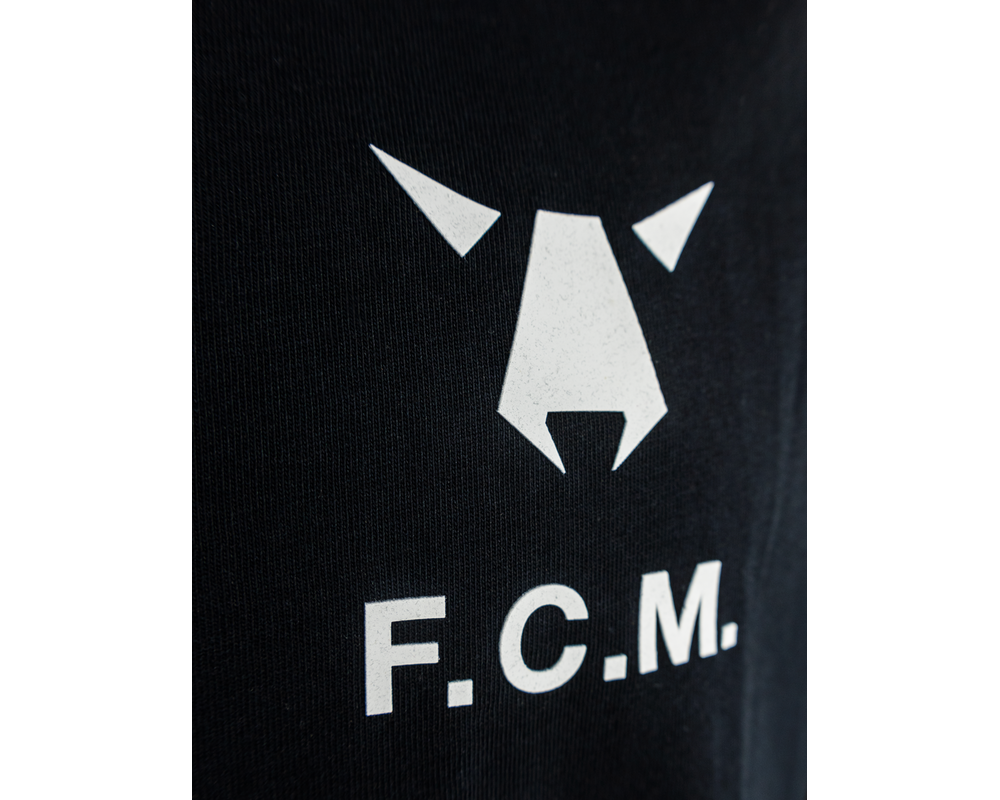 Sort t-shirt der er designet med det ikoniske ulvehovede med teksten F.C.M under, på hø'jre side af fronten. Bagsiden er prydet med et stemningsbillede fra MCH Arena, samt bogstaverne F C M henover.