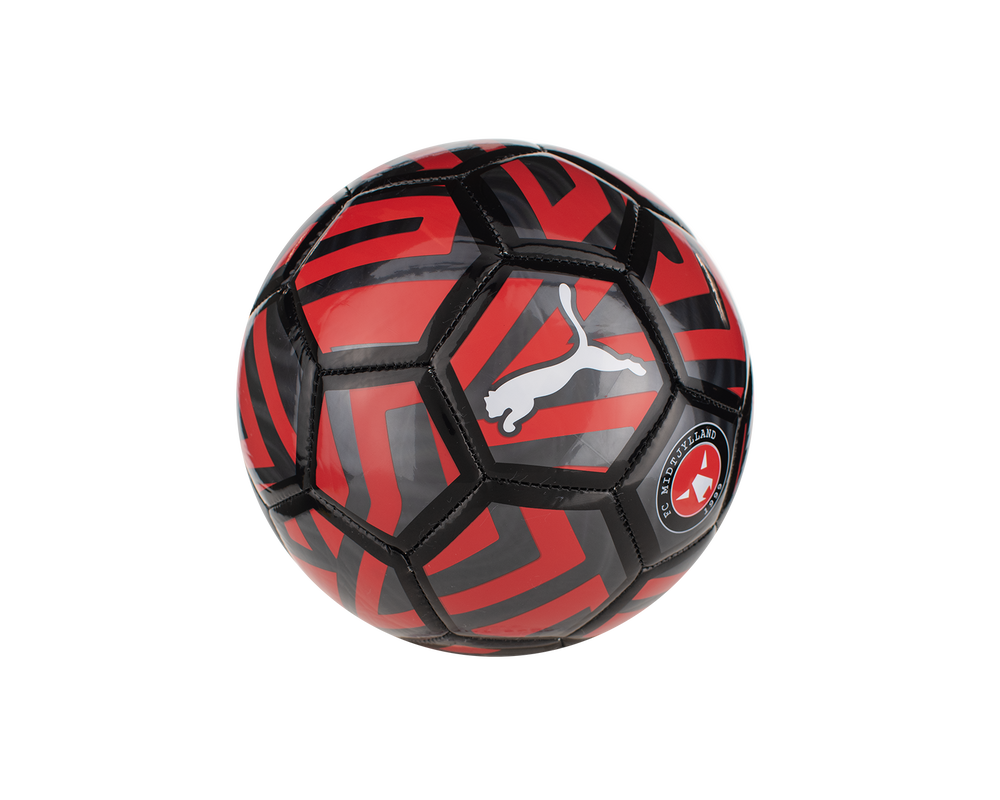 Denne speciallavede FCM Puma fodbold sikrer dig timevis af sjov på træningsbanen. Bolden er designet med de klassiske røde og sorte farver i fokus for at indkapsle FCM-DNA'et, og udtrykker sig i en visuel unik fodbold.