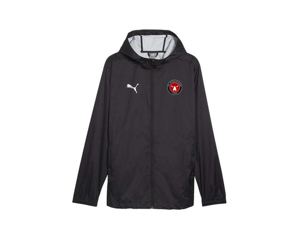 Hold dig beskyttet mod vind og vejr med FC Midtjylland teamFINAL allweather jakken. Denne jakke er designet til at give dig optimal komfort og beskyttelse, uanset hvor du træner. Med en regulær pasform og avanceret windCELL-teknologi, kan du være sikker på at holde vinden ude og varmen inde. Jakken har også en hætte for ekstra beskyttelse og lommer med lynlåse, så du kan opbevare dine ting sikkert. Kommer med de klassiske PUMA og FCM logoer på fronten, og FC Midtjylland tekst på ryggen.