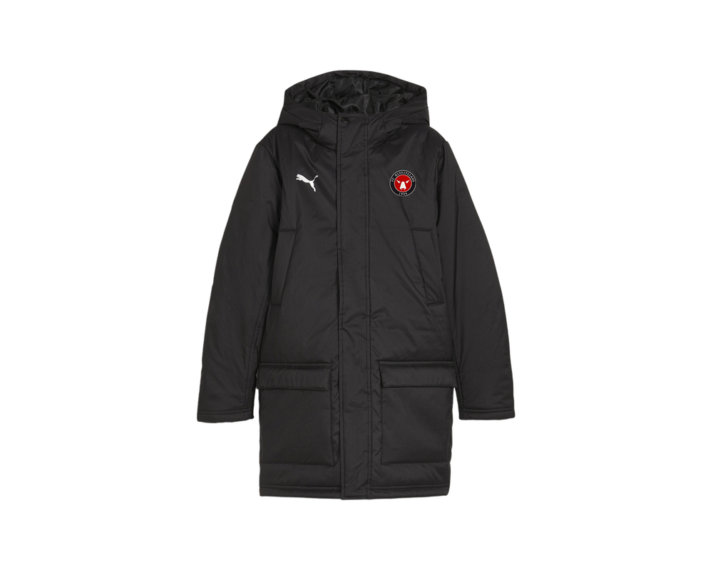 FC Midtjylland Final PUMA vinterjakke er skabt til et højt niveau af bevægelighed. Jakken er konstrueret med let og åndbart stof, som kombineret med FINAL's tætsiddende snit, resulterer i maksimal komfort.