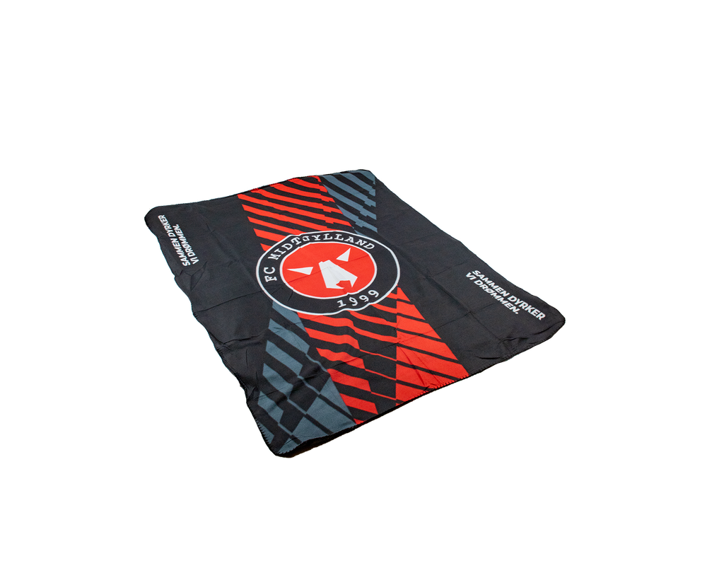 Lækkert Fleecetæppe med stort FC Midtjylland logo.