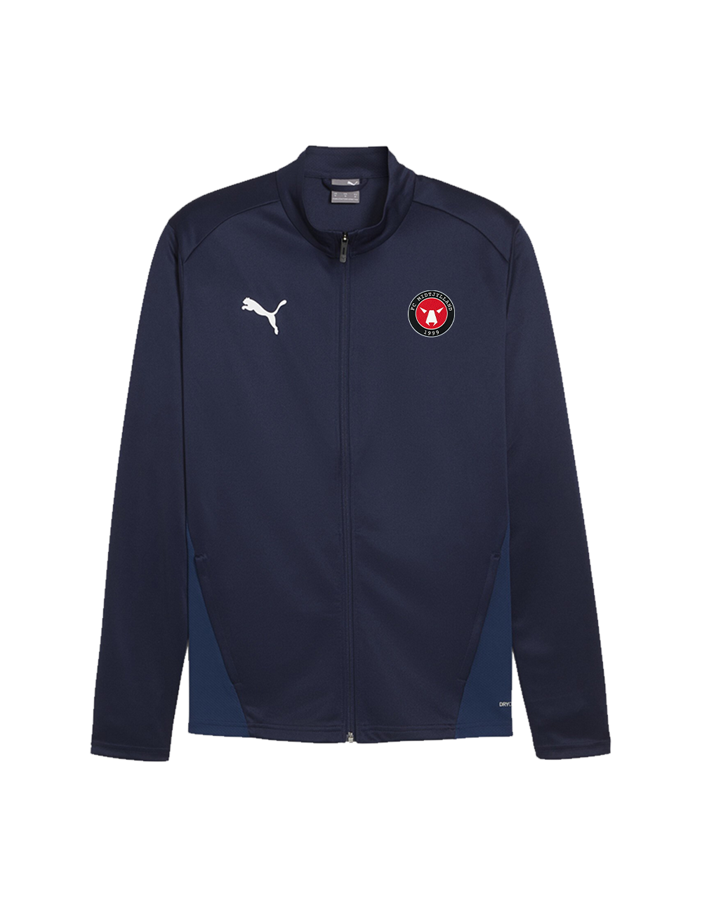 Denne FCM trænings cardigan er designet i et stilrent look med en klassisk navy farve og FCM logo på brystet. Puma Goal træningstrøjen er fremstillet med stor fokus på komfort og ydeevne under træning, som betyder at du kan træne som en ægte FC Midtjylland spiller med høj intensitet og bevægelighed på træningsbanen. En perfekt tilføjelse til dit udvalg af træningstøj.