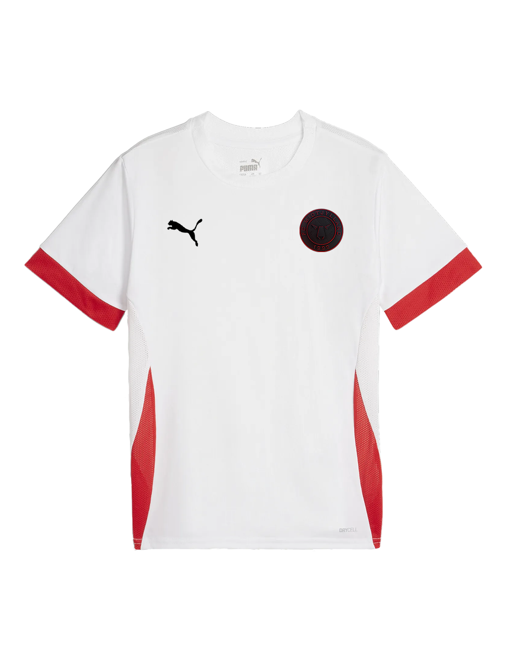 Vis din støtte til FC Midtjylland med denne hvide Puma T-shirt med røde detaljer og det ikoniske FCM-logo på brystet. Den er fremstillet i et let og åndbart materiale, som holder dig tør og komfortabel – perfekt til både kampdage og hverdagsbrug.