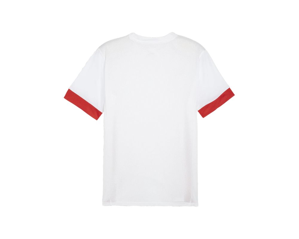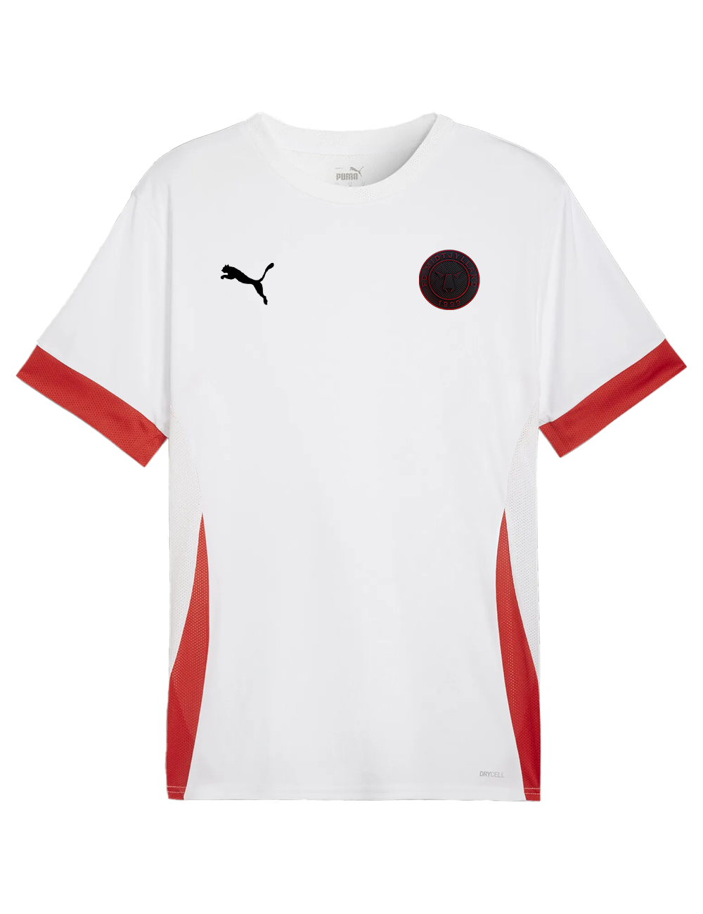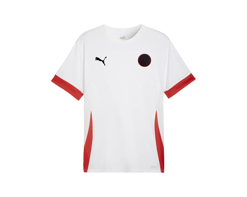 Vis din støtte til FC Midtjylland med denne hvide Puma T-shirt med røde detaljer og det ikoniske FCM-logo på brystet. Den er fremstillet i et let og åndbart materiale, som holder dig tør og komfortabel – perfekt til både kampdage og hverdagsbrug.