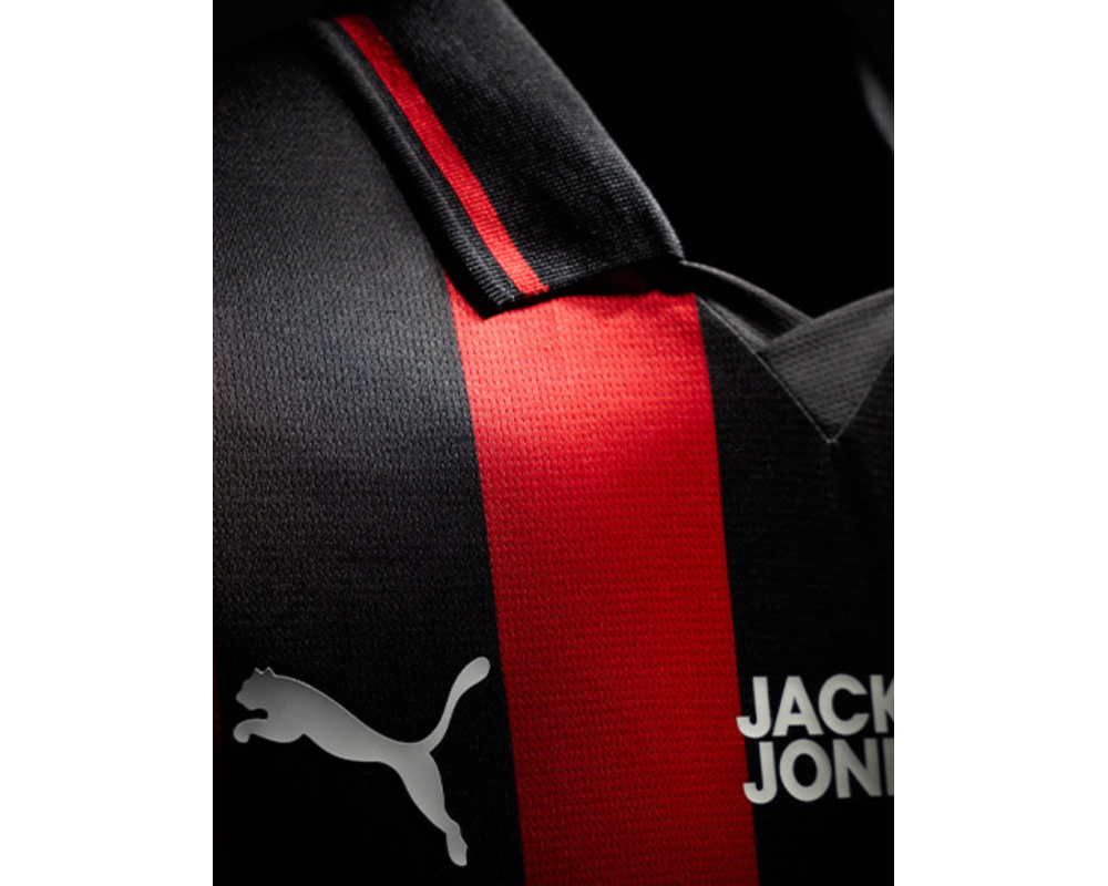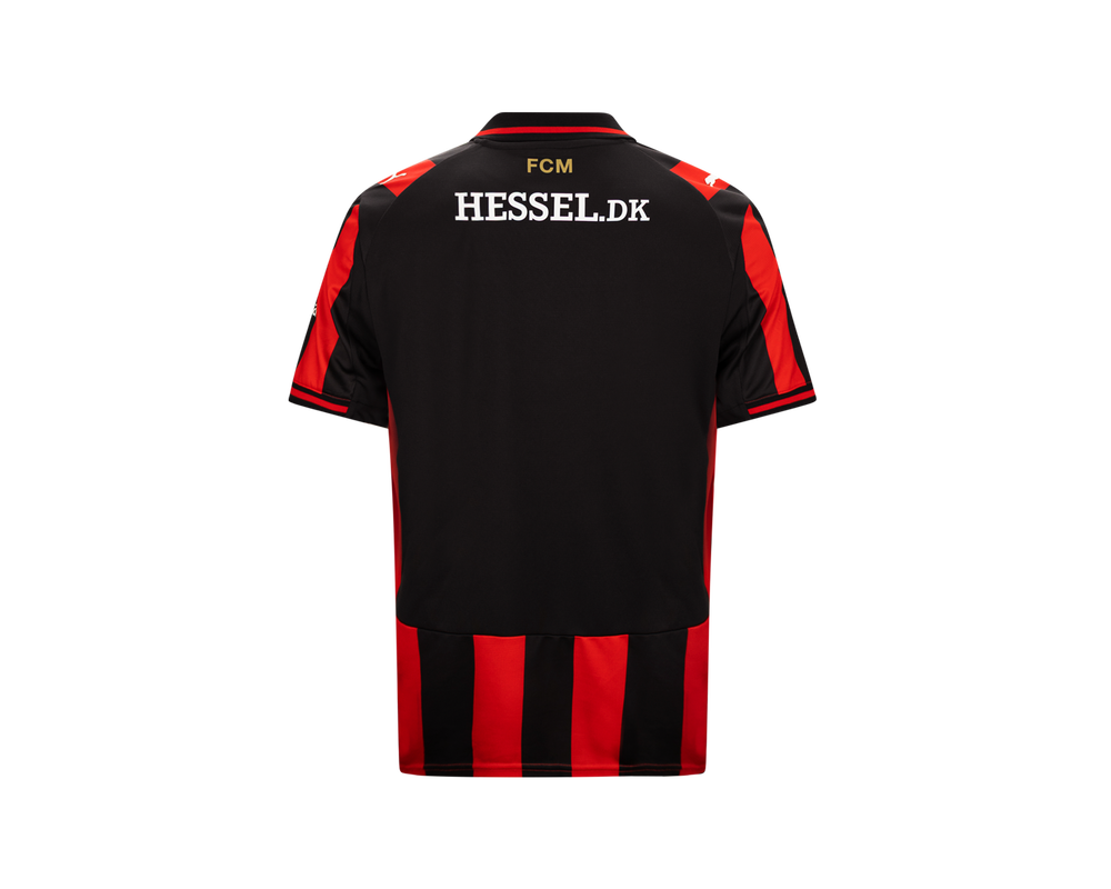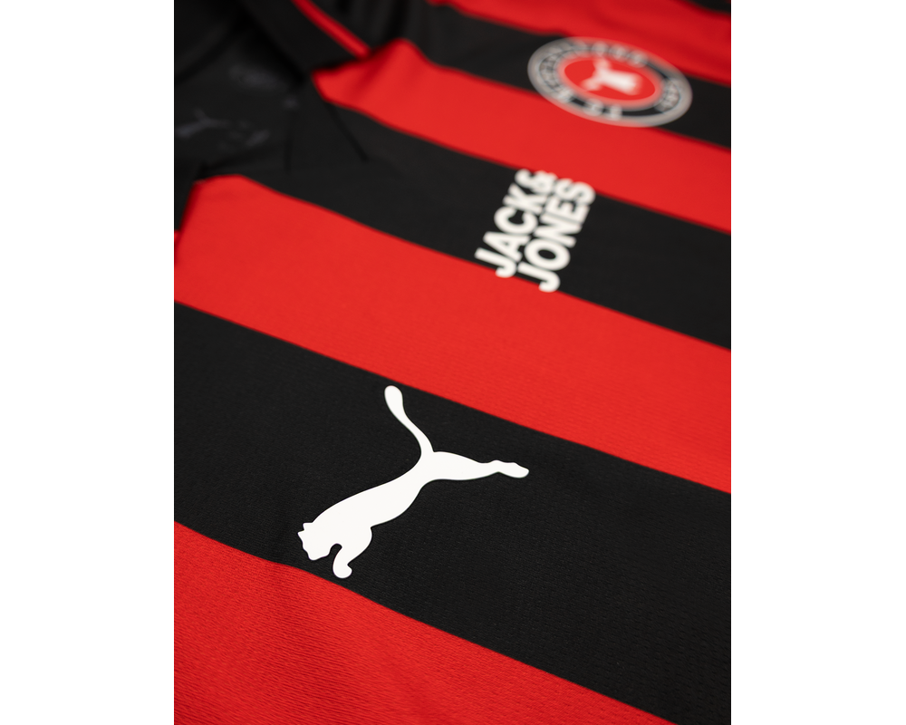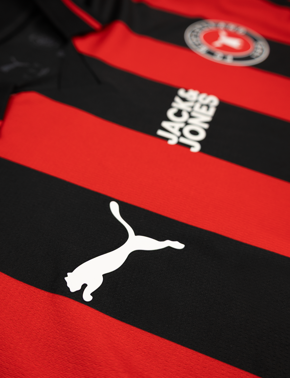 Hjemmebanetrøjen 25/26 er stribet i rød og sort – en farvekombination, der tydeligt signalerer FC Midtjyllands identitet både på og uden for banen. Trøjen er skabt i tæt samarbejde mellem FC Midtjylland og PUMA med ét klart formål: at give spillerne de bedste betingelser for at præstere på allerhøjeste niveau og samtidig inspirere fans i hele regionen. I designprocessen har det været essentielt at fastholde klubbens vilje til fornyelse, samtidig med at vi ærer vores rødder.