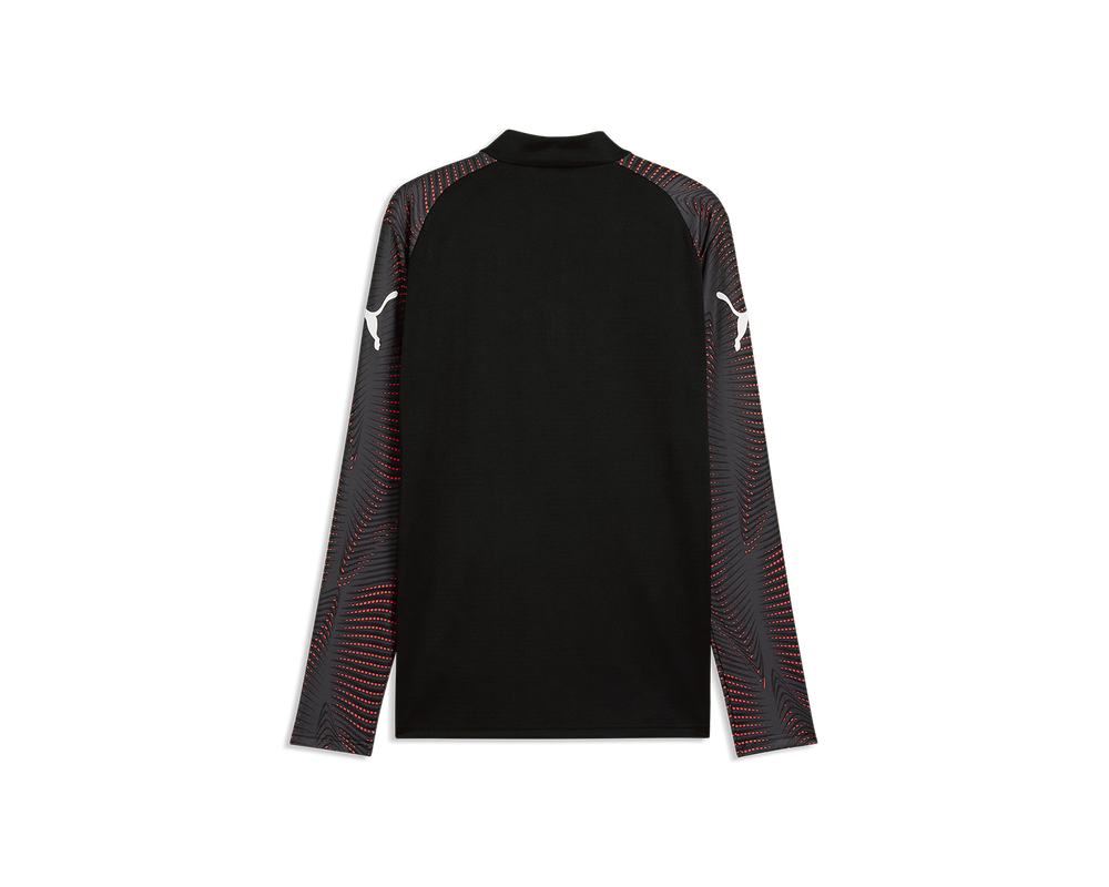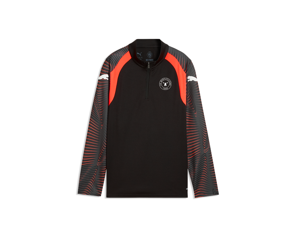Denne langærmede træningstrøje er designet til høj intensitet og komfort. Den praktiske kvartlange lynlås giver mulighed for justering og ventilation under træning, mens den normale pasform sikrer god bevægelsesfrihed. Det ikoniske FC Midtjylland-logo på brystet fuldender udtrykket og understreger klubbens identitet.