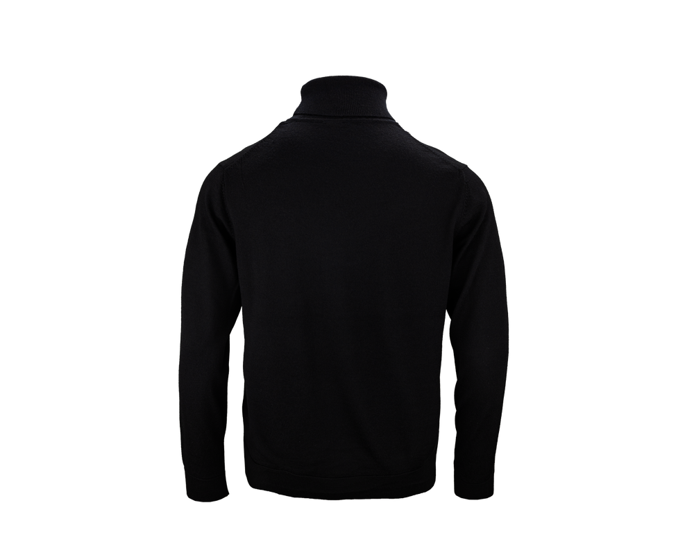 Sort strik i 100% merinould med rullekrave, der kombinerer luksus, varme og subtil elegance. Denne turtleneck er det perfekte valg til både hverdagsbrug og formelle anledninger, med et diskret design, der emmer af stil. Den bløde merinould sikrer komfort og varme, mens rullekraven tilføjer et ekstra lag af sofistikation. En alsidig klassiker, der holder dig både stilfuld og behageligt klædt på de kølige dage.