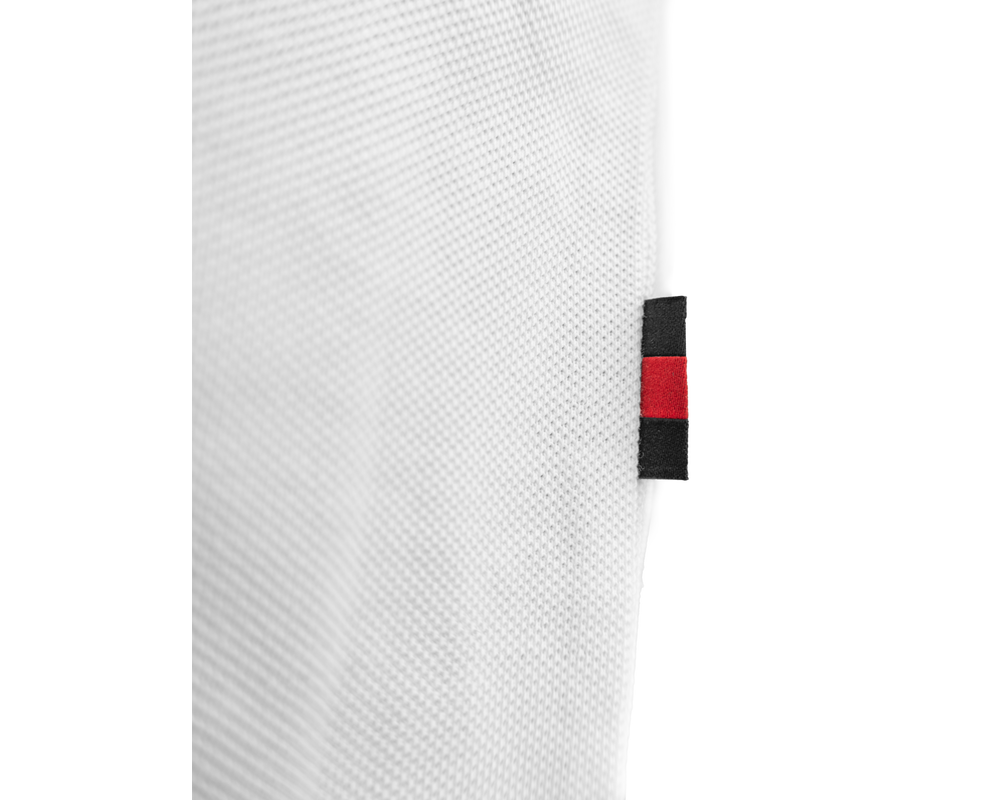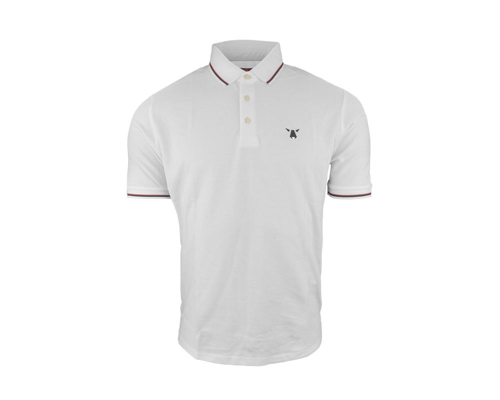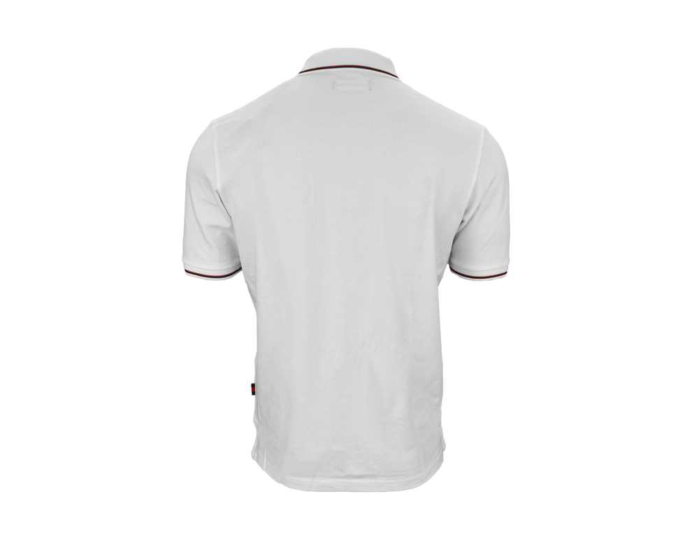 Hvid polo med ulvelogo på brystet, der kombinerer elegance med klubånd. Poloen har stilfulde kravedetaljer i hvid og rød, som tilføjer et sofistikeret touch. Perfekt til både casual og mere formelle lejligheder, tilbyder denne polo både komfort og et moderne look