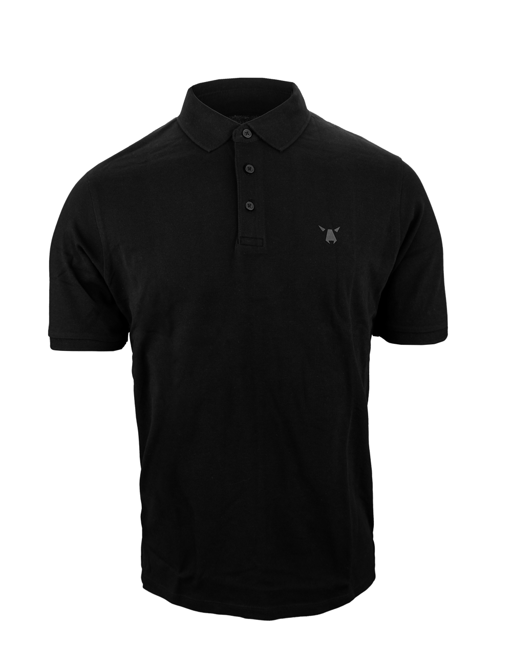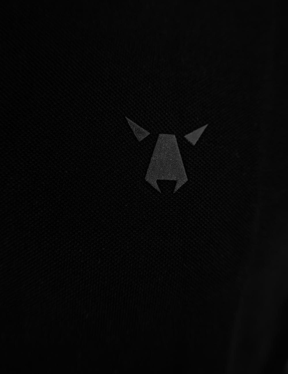 Helt sort polo med et diskret sort ulvelogo på brystet. Denne minimalistiske polo har ingen kravedetaljer og tilbyder et elegant, ensfarvet look. Perfekt til både afslappede og formelle lejligheder, kombinerer den enkelhed med stil og komfort.
