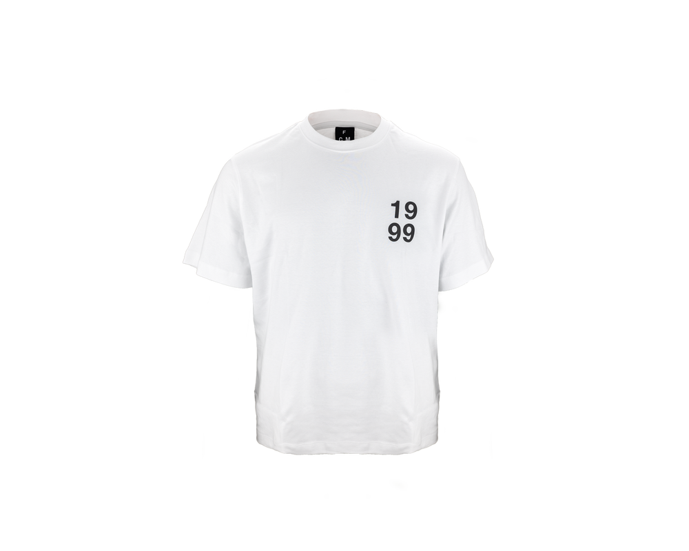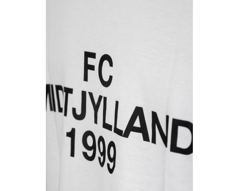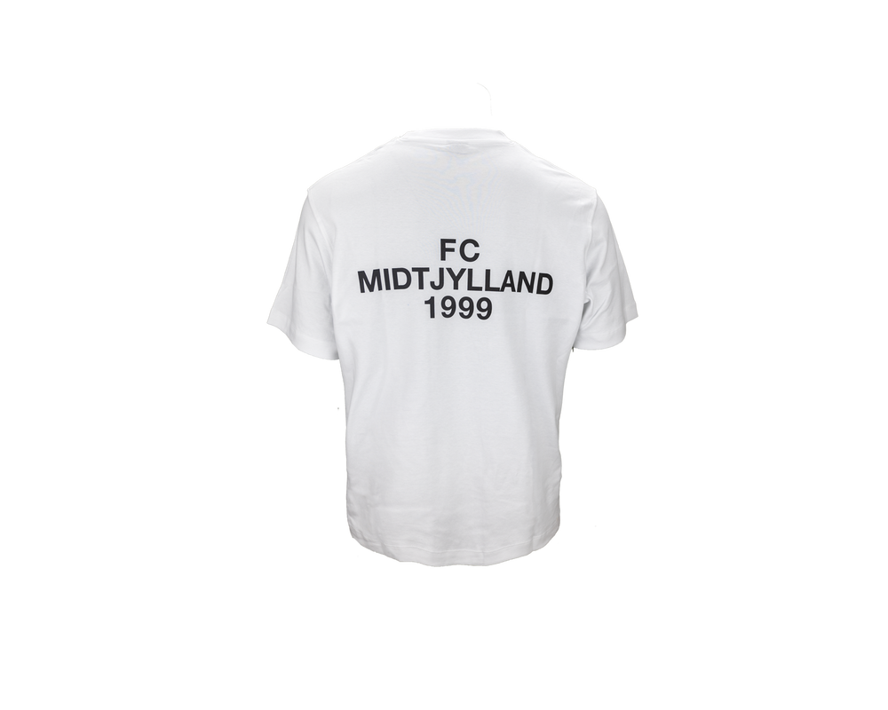 Hvid t-shirt, der hylder FC Midtjyllands grundlæggelse i 1999. Med et sort '1999' logo på brystet og teksten 'FC Midtjylland 1999' på ryggen, er denne t-shirt både stilfuld og behagelig. Den bløde stof sikrer komfort hele dagen, mens det underspillede design gør den perfekt til både kampdage og afslappede dage. Vis din støtte til klubben med denne elegante og alsidige t-shirt.