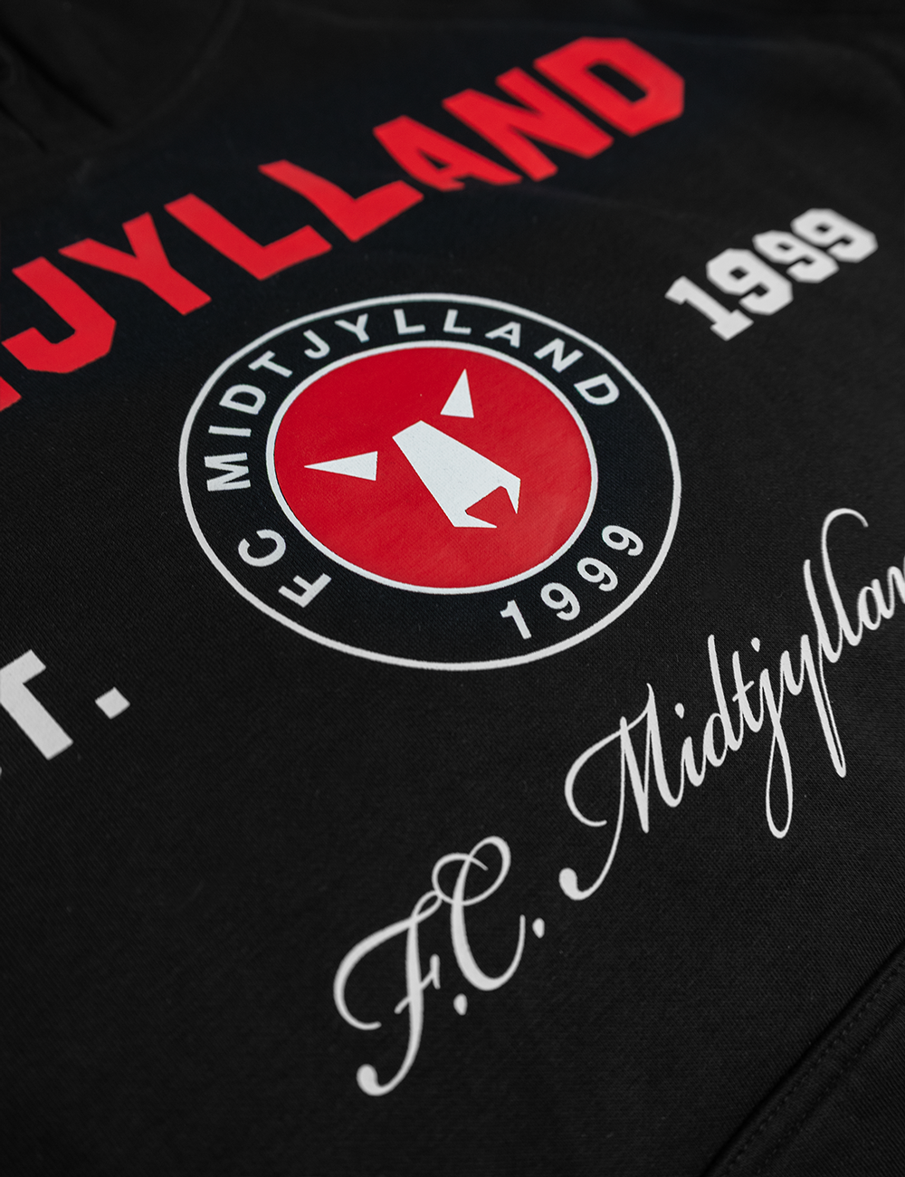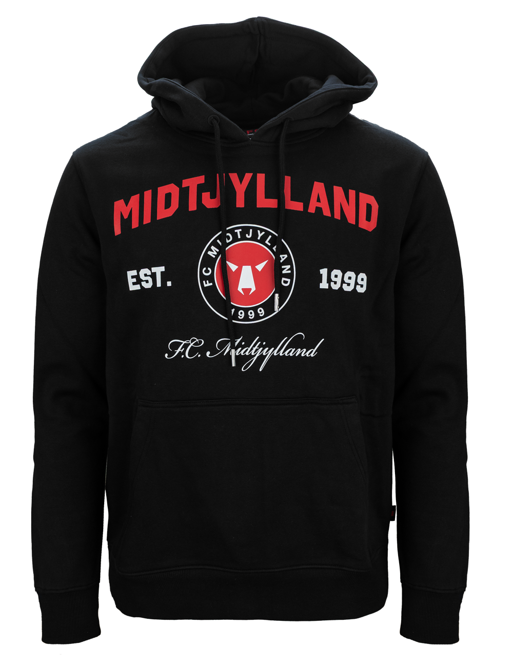 En hoodie skal kombinere komfort, funktionalitet og et stilrent udtryk – og netop dét får du her. Denne sorte hættetrøje med "MIDTJYLLAND" på brystet har en afslappet loose fit pasform, der gør den både behagelig til hverdagen og ideel til ture på stadion.