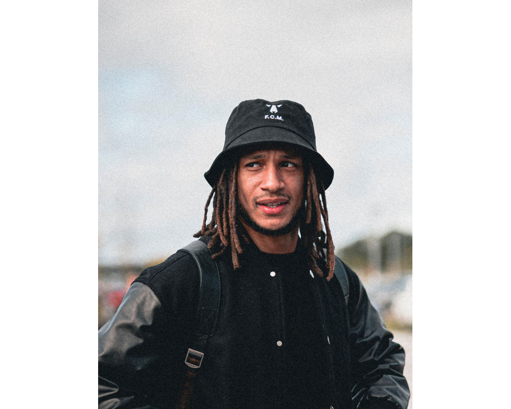 Elegant FC Midtjylland Bøllehat i sort, med det ikoniske ulvehoved og teksten F.C.M. under.