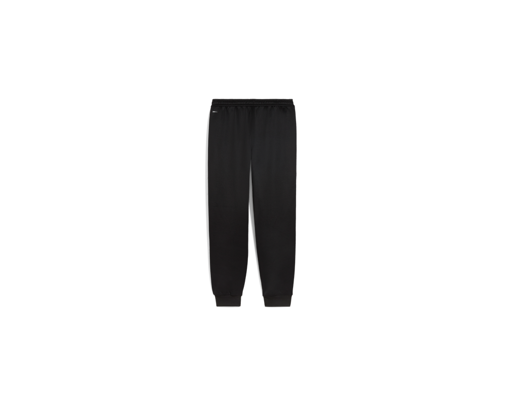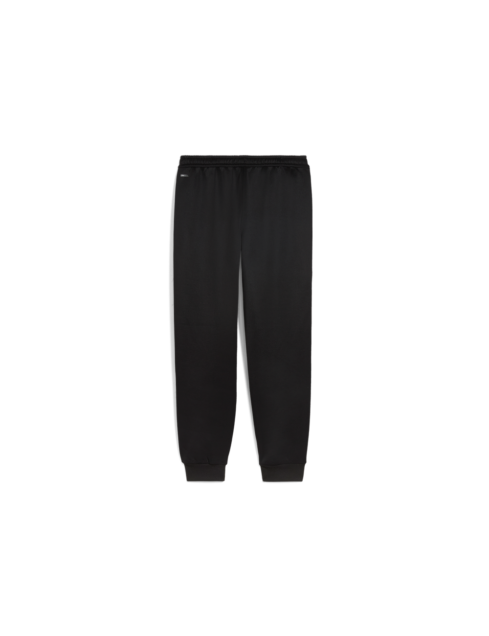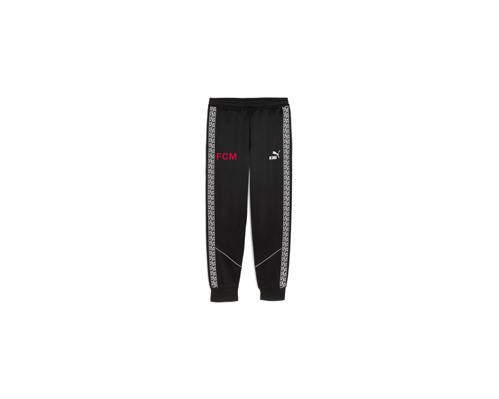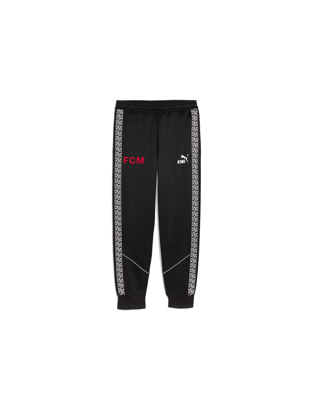 Gør dine hverdagsrejser og fritidsdage mere stilfulde med KING Travel Bukserne til børn fra Puma – en kombination af sportslig komfort og moderne design. Bukserne er udført i et klassisk sort look med mønstrede detaljer langs buksebenene, der tilfører et unikt og dynamisk udtryk med "FCM" skrevet med rød skrift på det ene bukseben.
