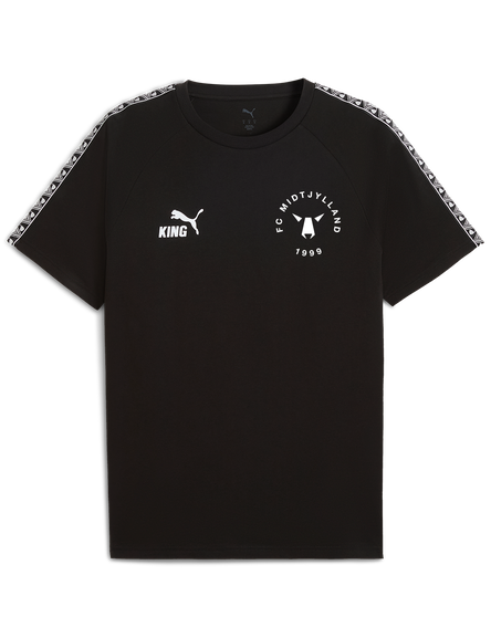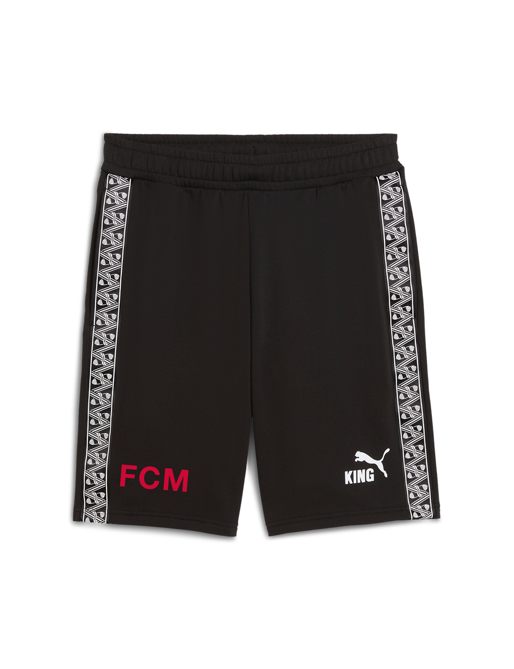 Gør dine hverdagsrejser og fritidsdage mere stilfulde med KING Travel Shorts til børn fra Puma – en kombination af sportslig komfort og moderne design. Shortsene kommer i et klassisk sort look med mønstrede detaljer langs benene, der skaber et unikt og dynamisk udtryk. "FCM" er skrevet med rød skrift på det ene ben, hvilket tilføjer et markant og klubtro finish.