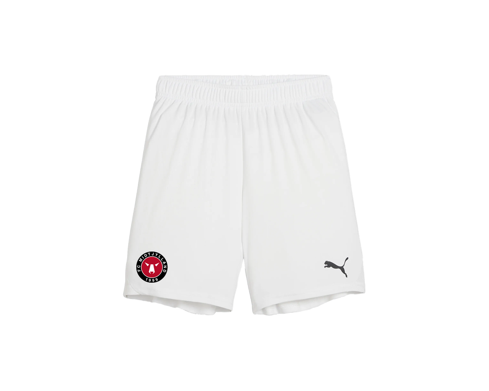 Disse målmandsshorts til hjemmebanesæsonen 25/26 er udviklet i samarbejde med PUMA og er en del af FC Midtjyllands officielle kampuniform. Shortsene leveres i en skarp, hvid farve, der matcher sæsonens målmandstrøje. Det funktionelle design sikrer høj komfort og maksimal bevægelsesfrihed – ideelt til både lynhurtige redninger og fuld stræklængde i målet.