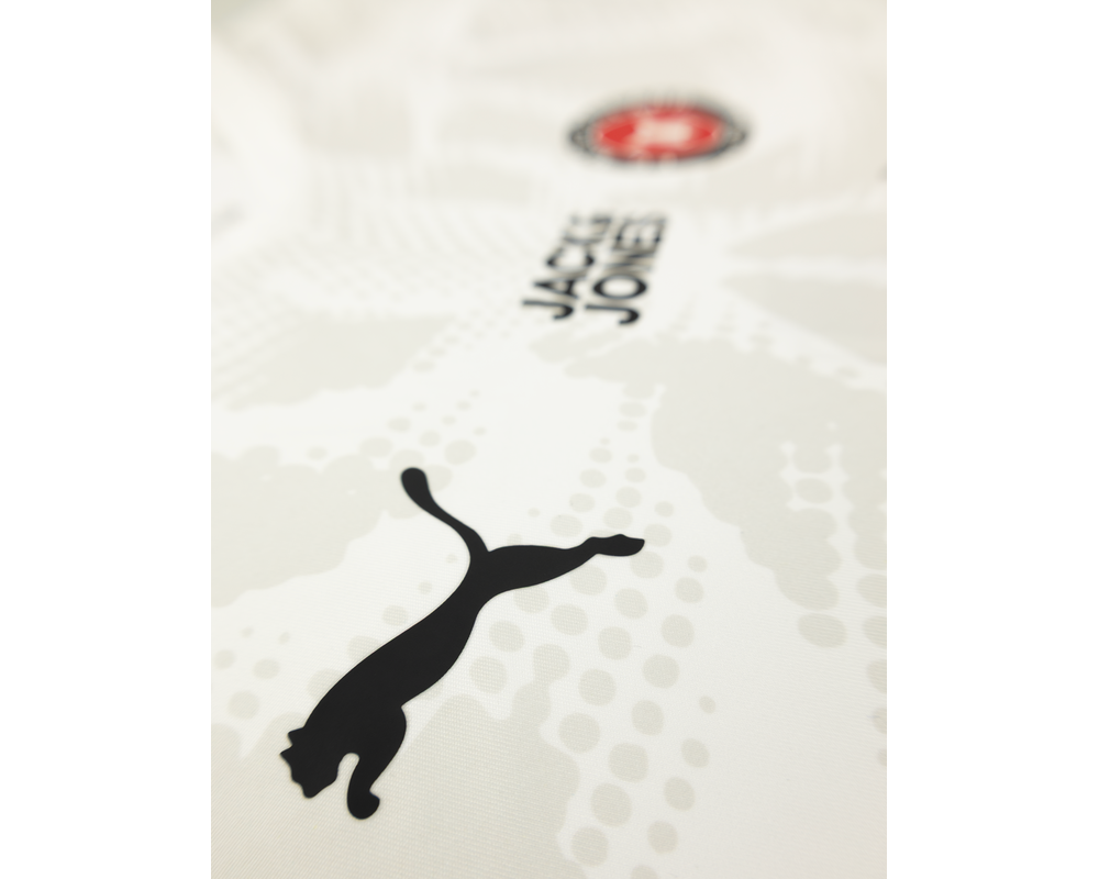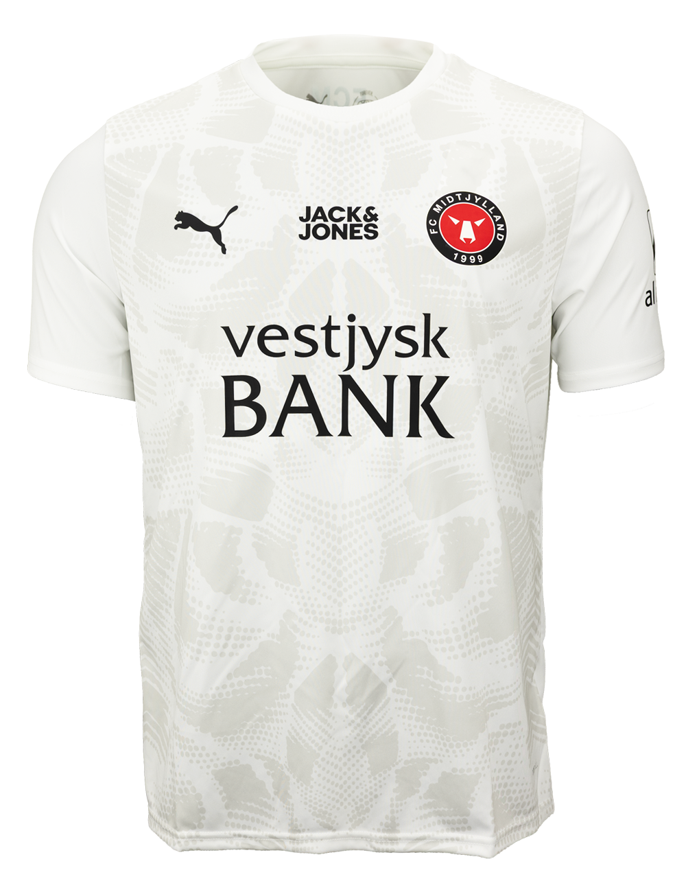 FC Midtjyllands officielle målmandstrøje for hjemmebanesæsonen 25/26 er skabt i samarbejde med PUMA og præsenteres i en elegant hvid nuance med et karakteristisk mønster, der giver et skarpt og moderne udtryk. Trøjen er konstrueret i et let og åndbart materiale, der understøtter maksimal bevægelighed og optimal ventilation – ideel til målmænd, der skal være skarpe og reaktionsstærke fra første til sidste fløjt. Et funktionelt og stilfuldt valg til den sidste skanse.