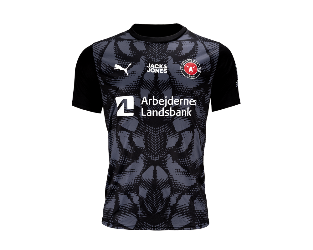 FC Midtjyllands målmandstrøje for udebanebanesæsonen 25/26. Trøjen er designet af PUMA i sort med et markant mønster, og det strømlinede look kombinerer moderne æstetik med sportslig funktionalitet. Trøjen er fremstillet i et let og ventilerende materiale, der understøtter fri bevægelighed og holder kroppen afkølet under pres. Ideel til målmænd, der kræver fokus, smidighed og hurtige reaktioner gennem hele kampen.