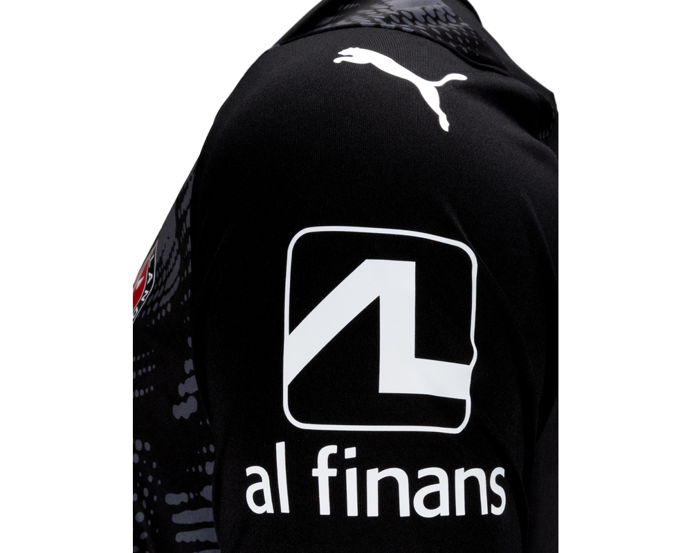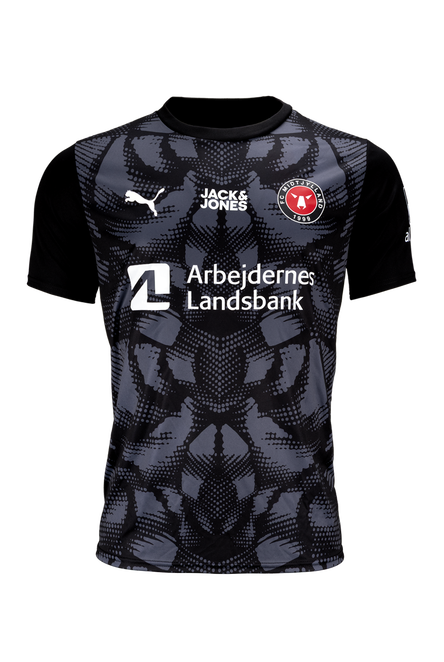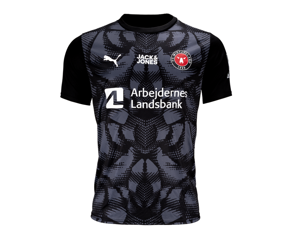 FC Midtjyllands målmandstrøje for udebanebanesæsonen 25/26. Trøjen er designet af PUMA i sort med et markant mønster, og det strømlinede look kombinerer moderne æstetik med sportslig funktionalitet. Trøjen er fremstillet i et let og ventilerende materiale, der understøtter fri bevægelighed og holder kroppen afkølet under pres. Ideel til målmænd, der kræver fokus, smidighed og hurtige reaktioner gennem hele kampen.