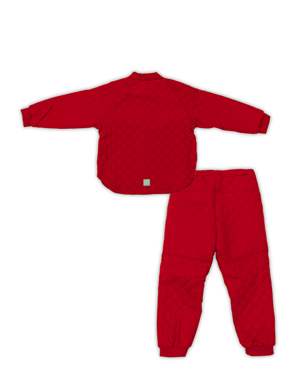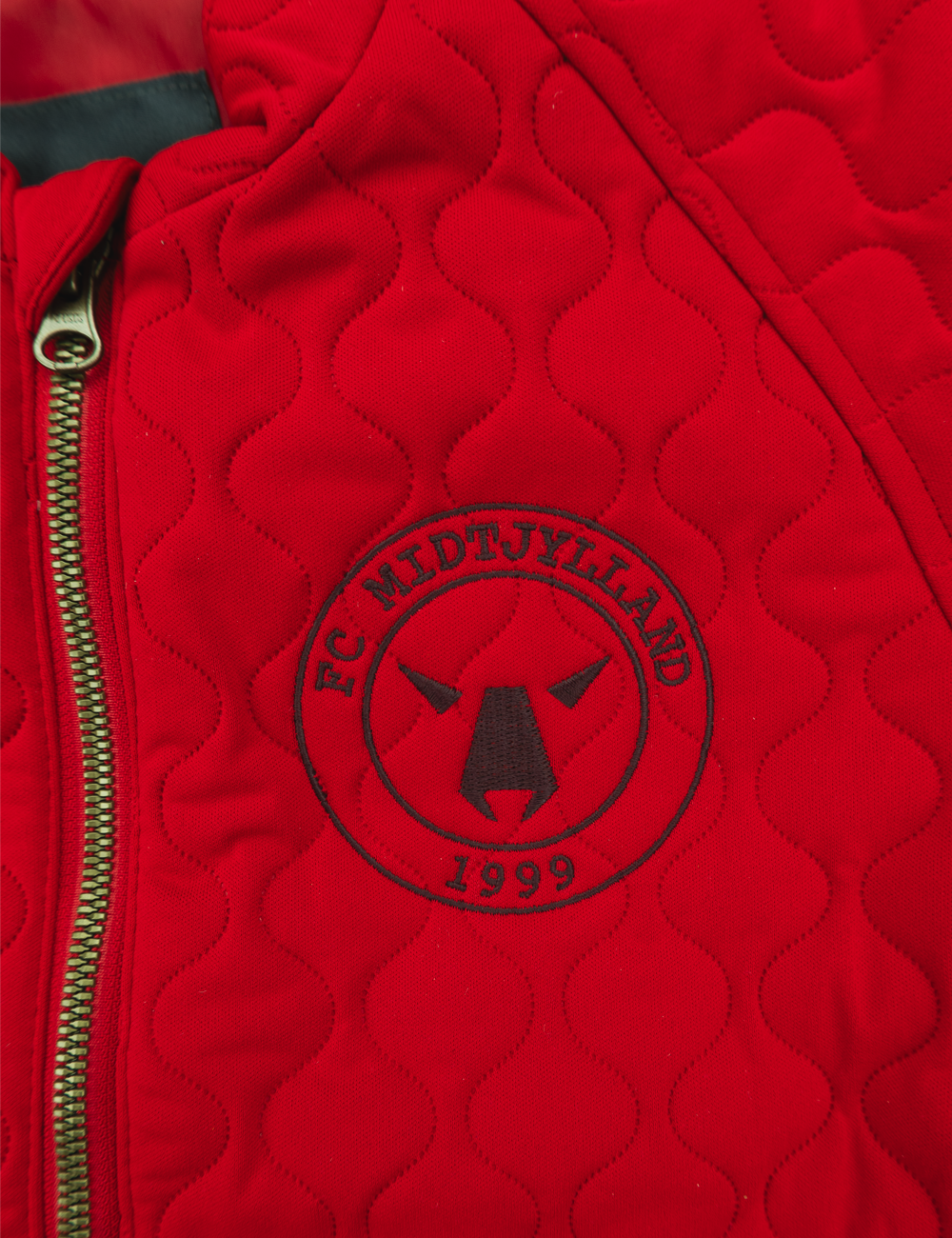 Lækkert termosæt i rød, bestående af en termojakke og et par termobukser. FCM-logoet fremgår både på brystet og på det ene bukseben, så dit barn kan bære klubstolthed fra top til tå. Det stilfulde og funktionelle design sikrer ikke kun varme og komfort, men lader også de små vise deres støtte til klubben i hverdagen. Termosættet er polstret indvendigt og er lavet af slidstærkt polyester, så det holder godt på varmen.