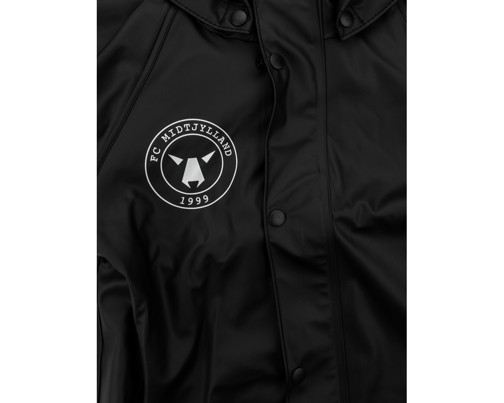 Hold de helt små tørre og stilfulde med denne praktiske, sorte regnjakke til børn. Jakken er perfekt til de regnfulde dage, hvor komfort og funktionalitet er i fokus. Regnjakken har det klassiske FCM-logo på brystet, så dit barn kan vise sin støtte med stolthed. Jakken er lavet af vandtæt materiale, der beskytter mod regn og vind, og er ideel til både hverdagsbrug og udendørs eventyr.