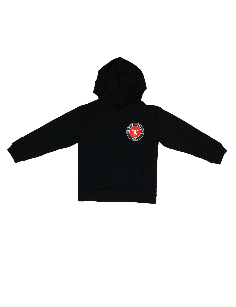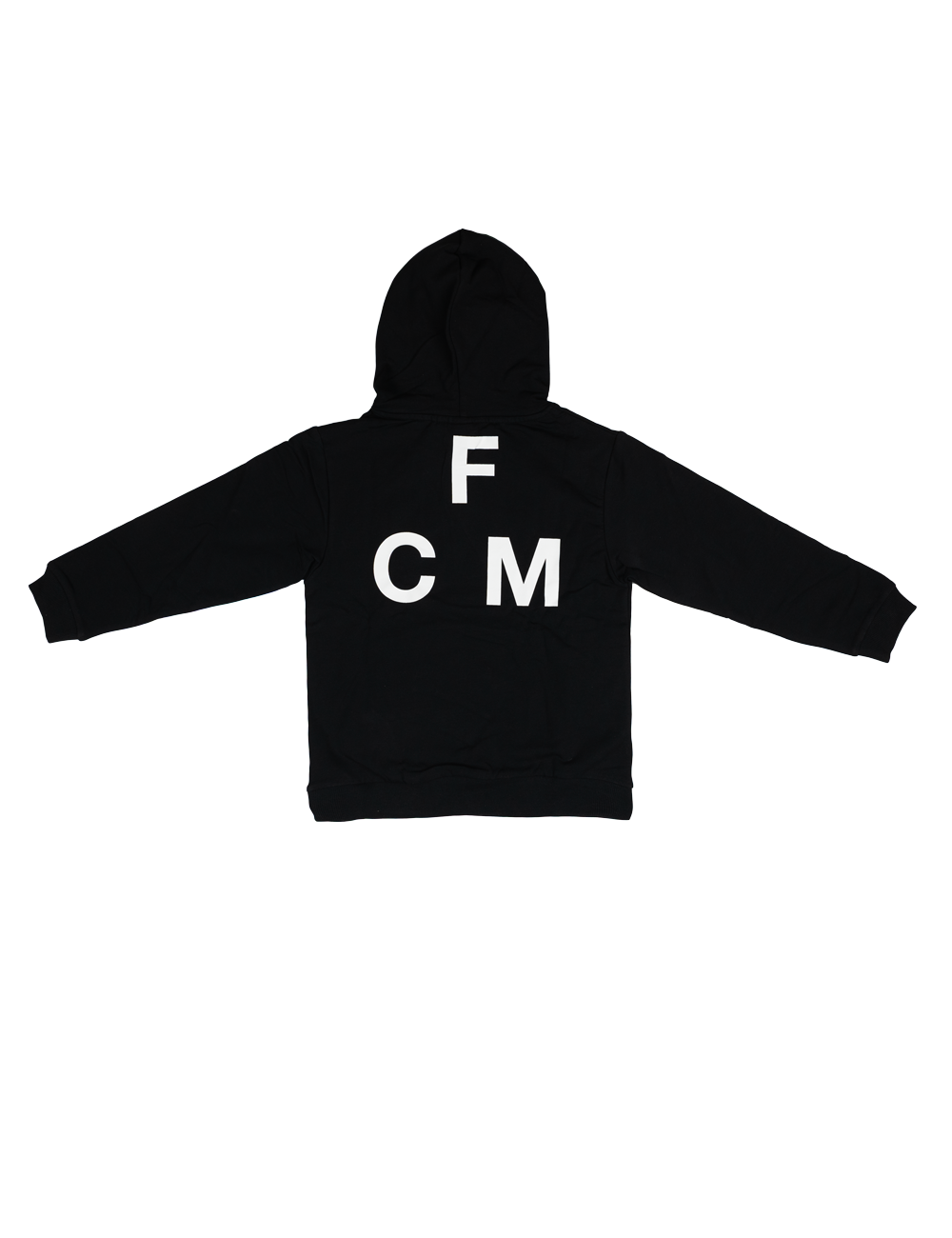Giv de yngste FCM-fans en sjov og stilfuld måde at vise deres klubstolthed på med denne sorte hoodie. Den har et FCM-logo på brystet og hvide bogstaver “F C M” på ryggen, der giver et tydeligt og sejt look. Hættetrøjen er udstyret med en hætte med to små ører, som tilføjer et legende touch. Fremstillet i blødt og komfortabelt materiale, perfekt til leg.